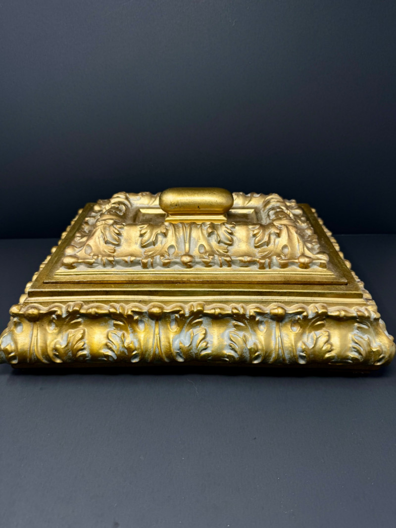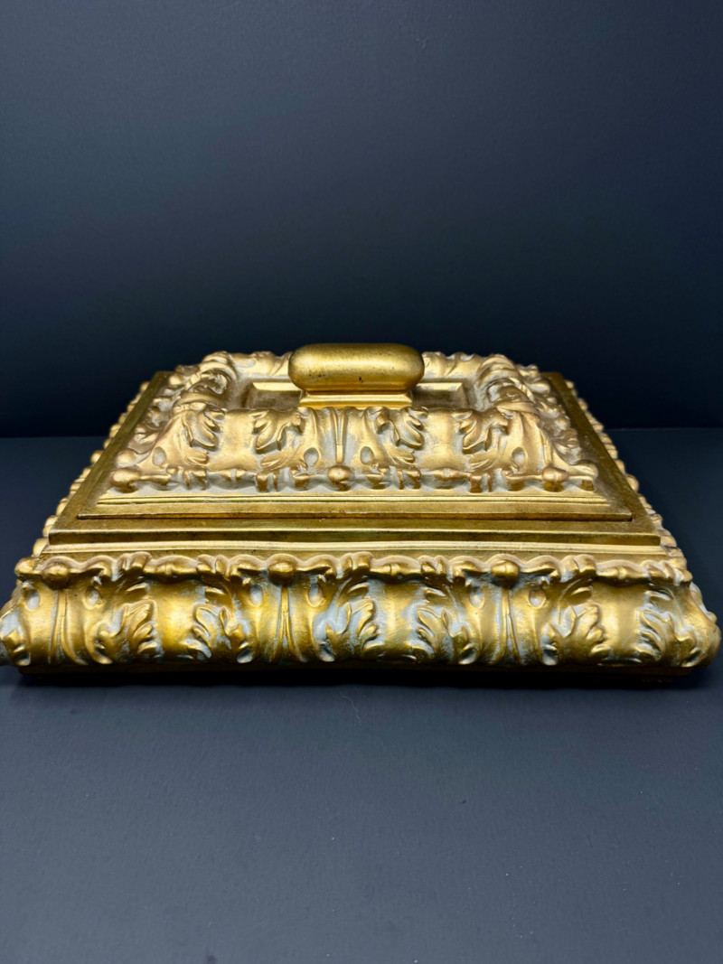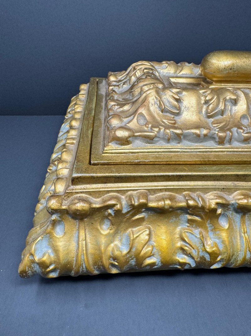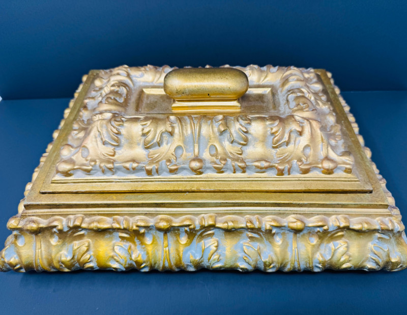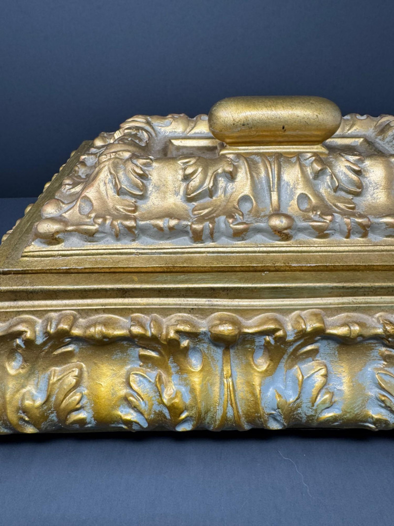 Lot # 69 - Large Ornate Gold & Velvet Lined Decorative Box w/ Raised Leaf Motif