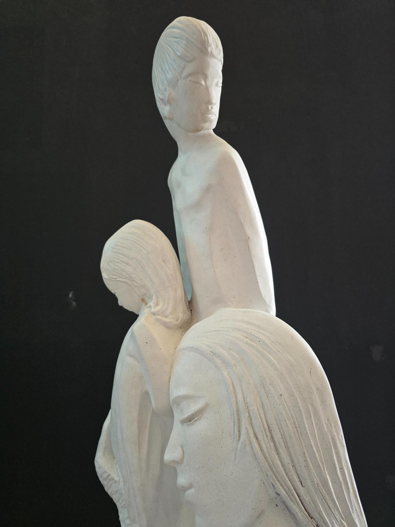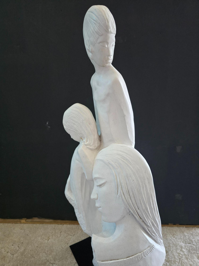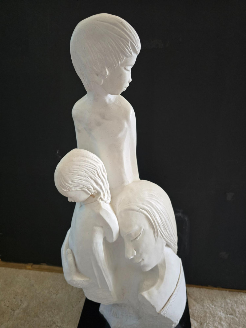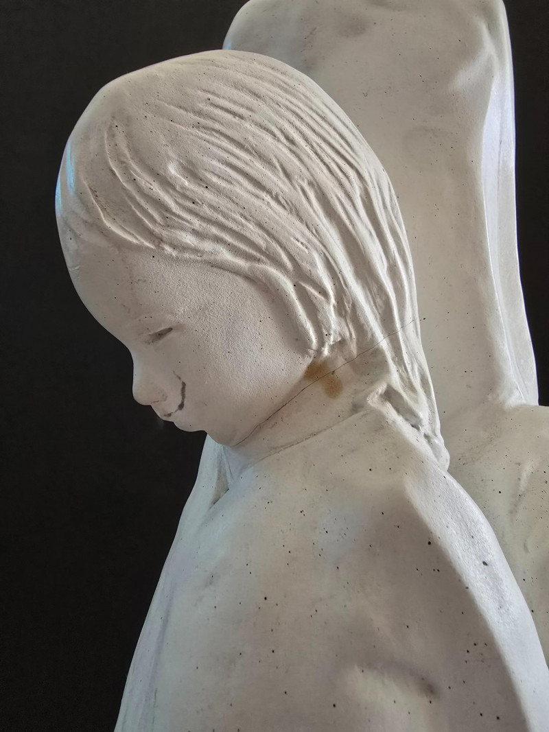 "A Mothers Love" Sculpture By David Fisher - Circa 1988. 11" x 27" No visible signature or maker's mark. (Repaired crack on neck of girl)