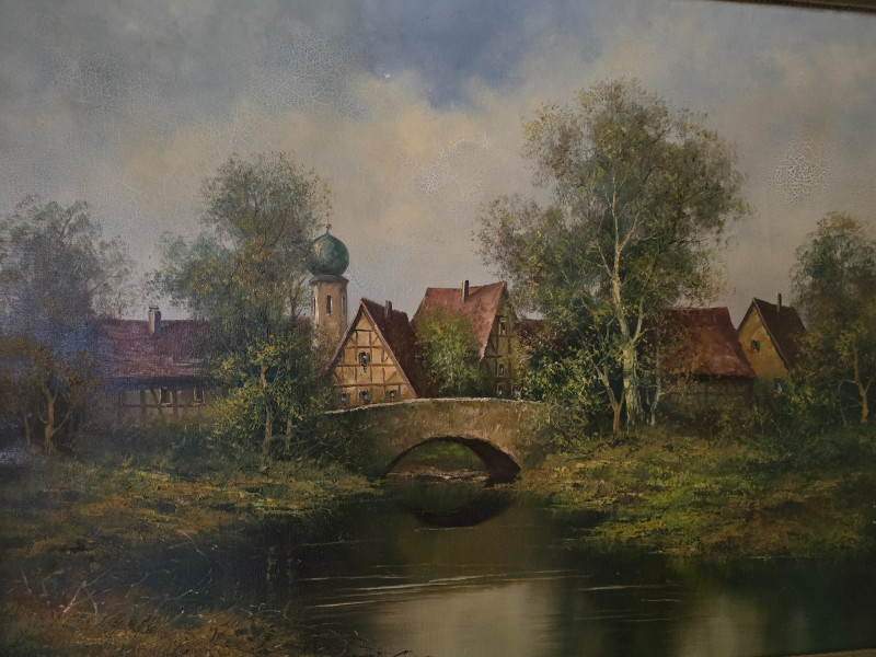 Lot # 73 - Vintage Framed European Village Landscape Oil Painting on Canvas