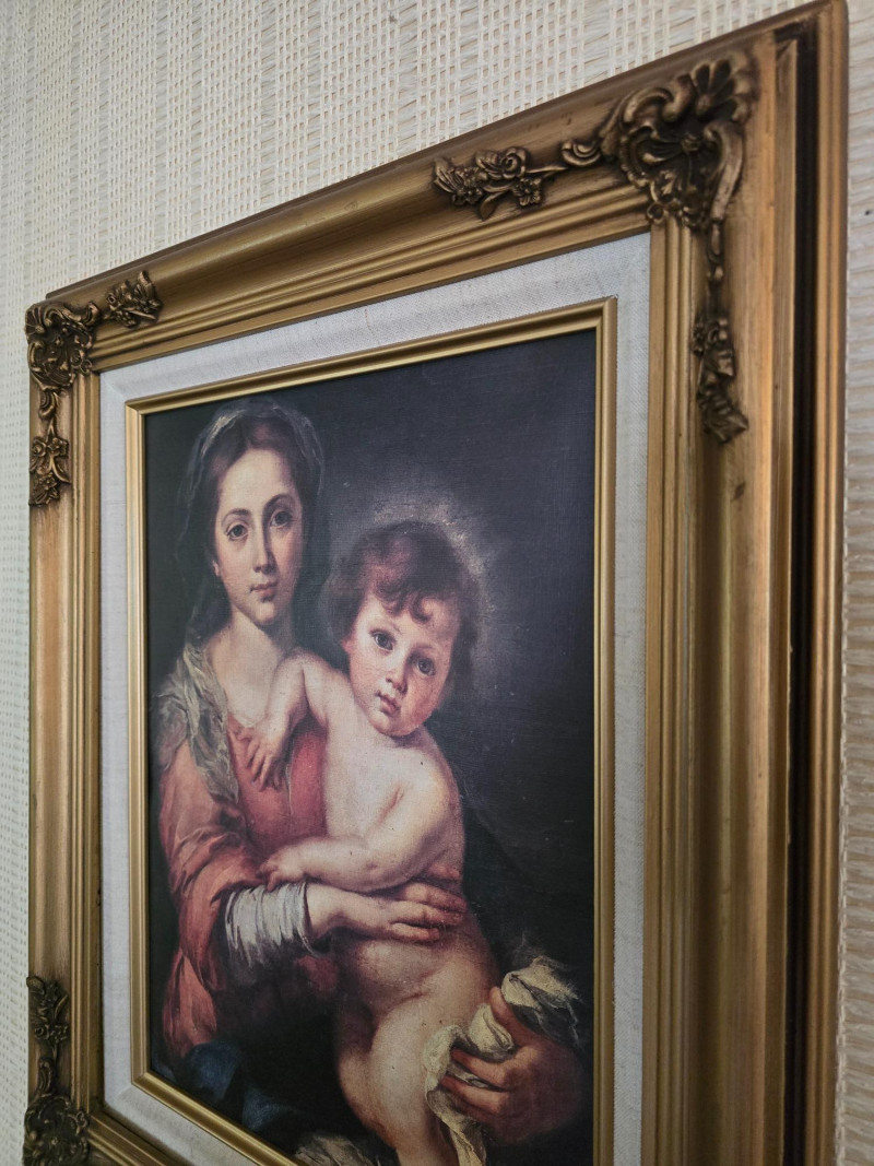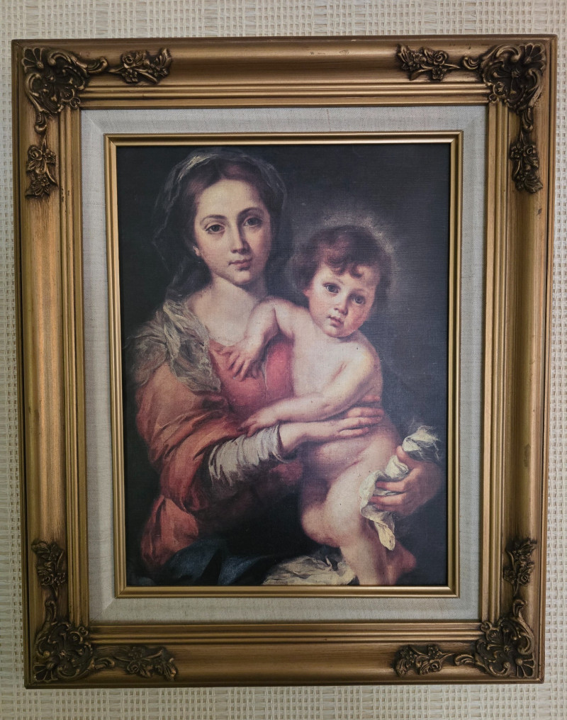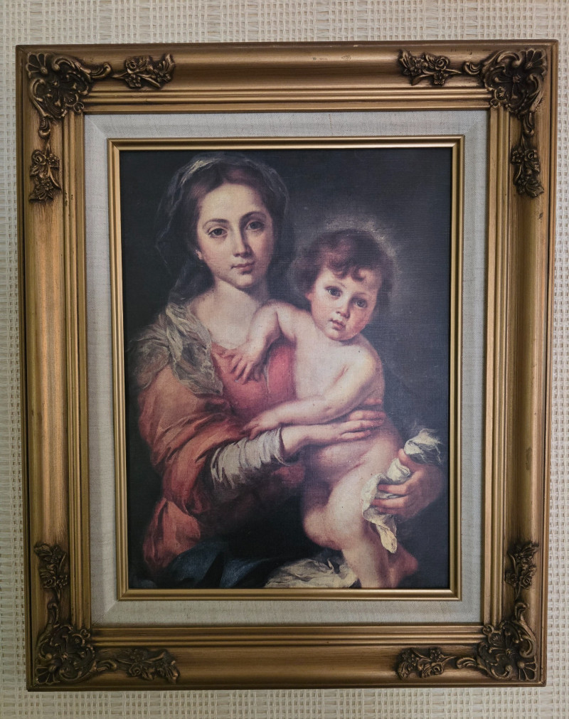 Framed Madonna & Child Print – After Bartolomé Esteban Murillo. 22" x 18.5"