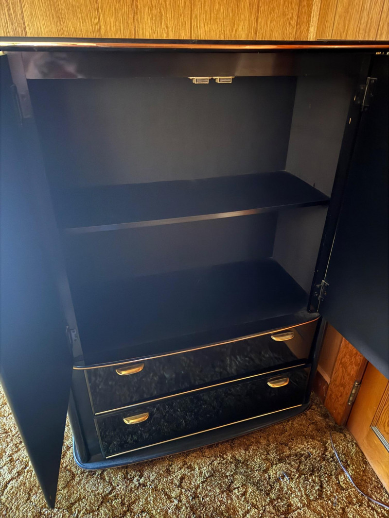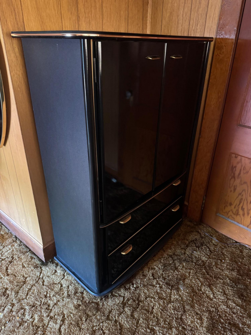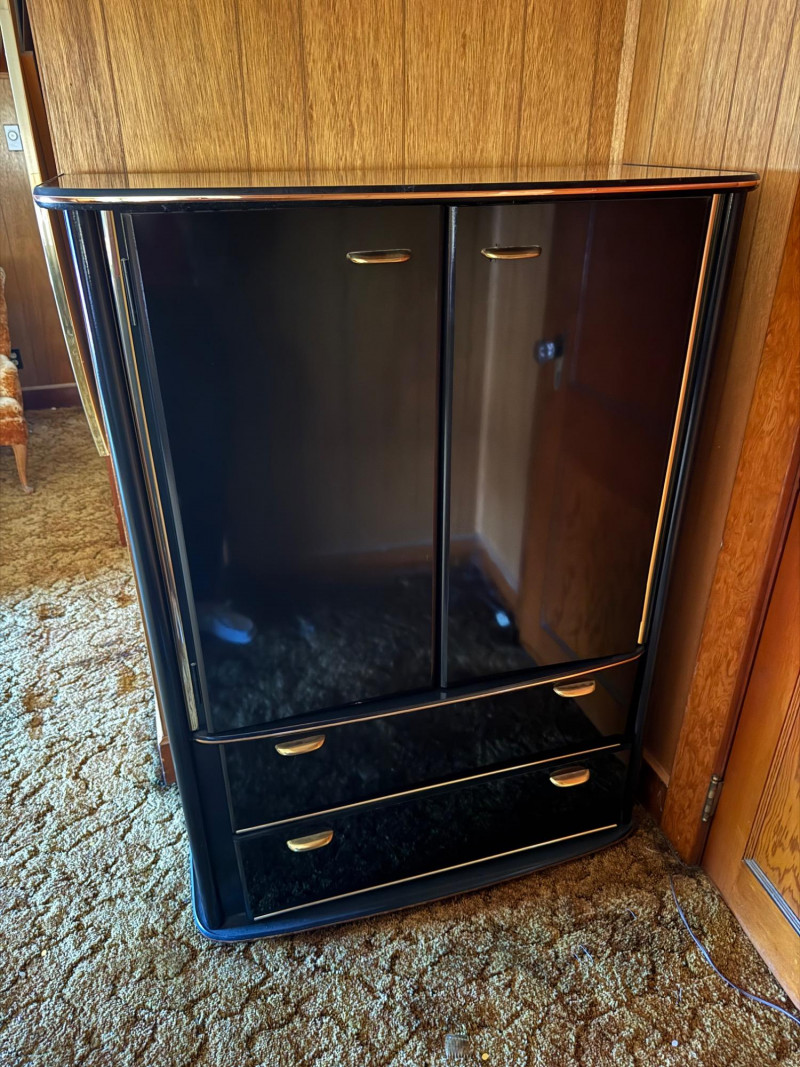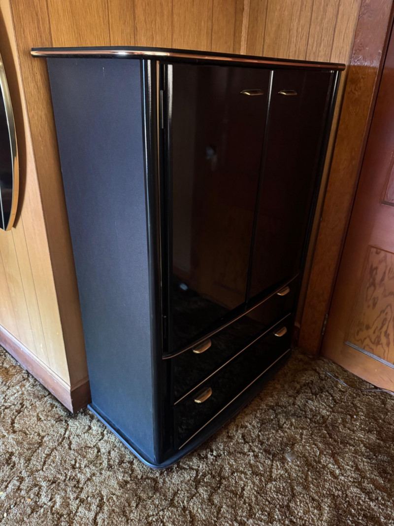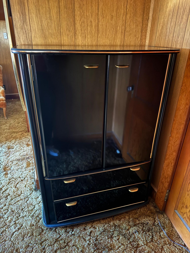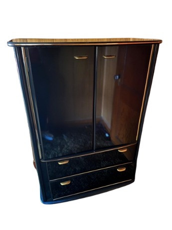 Perdue Furniture Black Lacquer Armoire/Wardrobe w/ Gold Accents. 38” Wide 18” Deep 52” Tall Bidding on this lot is an agreement that: (1.) You will have at least 2 capable, able bodied persons to lift and load at a minimum. (2.) You will bring a hand truck and/or any other tools needed to remove this item. If these steps are not followed your item will be forfeit and no refund given.