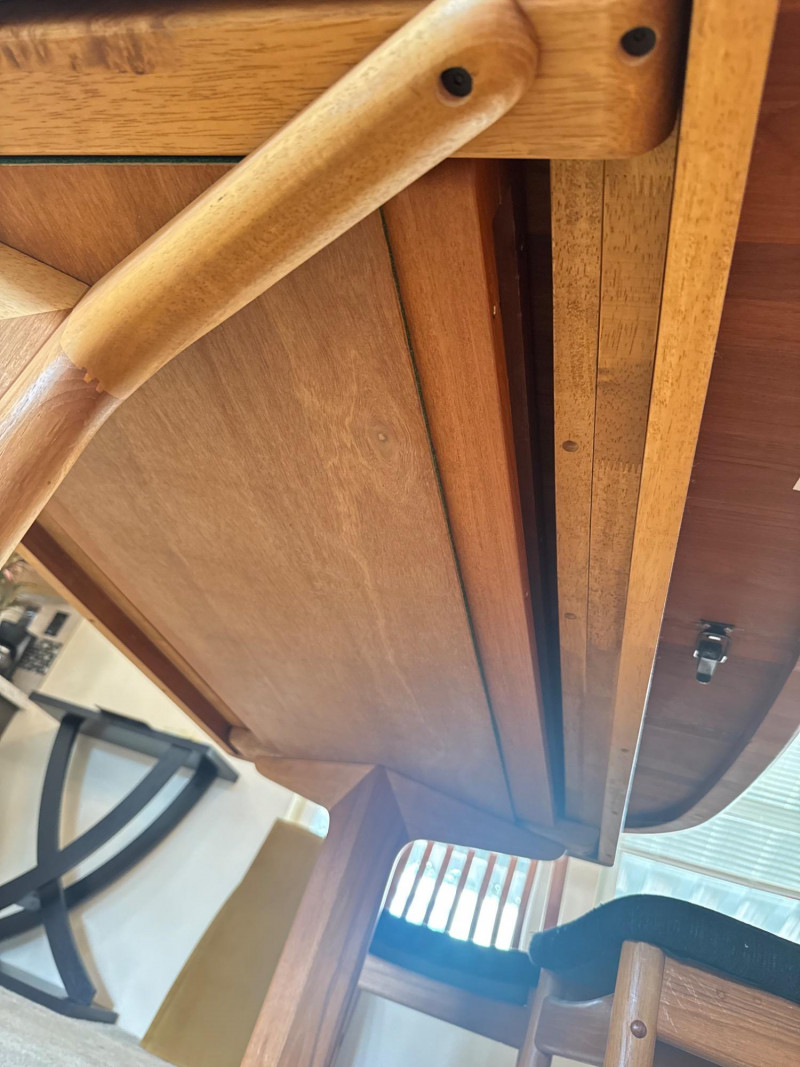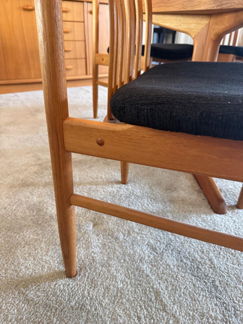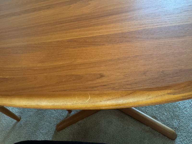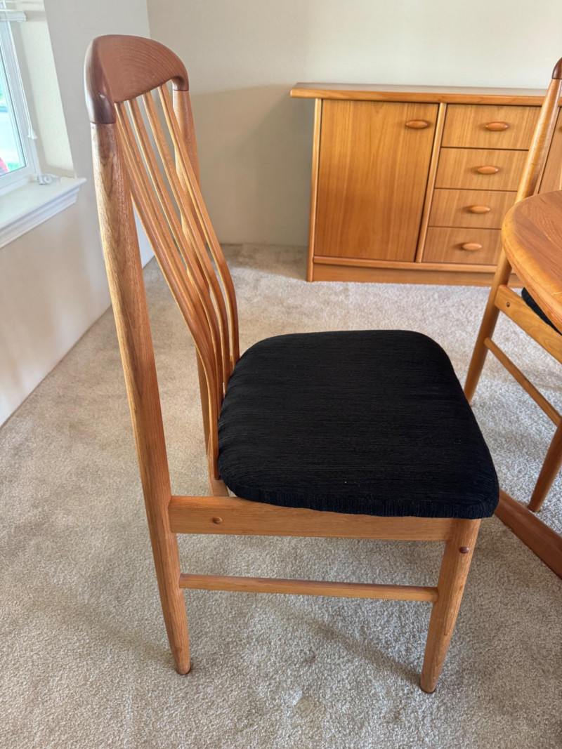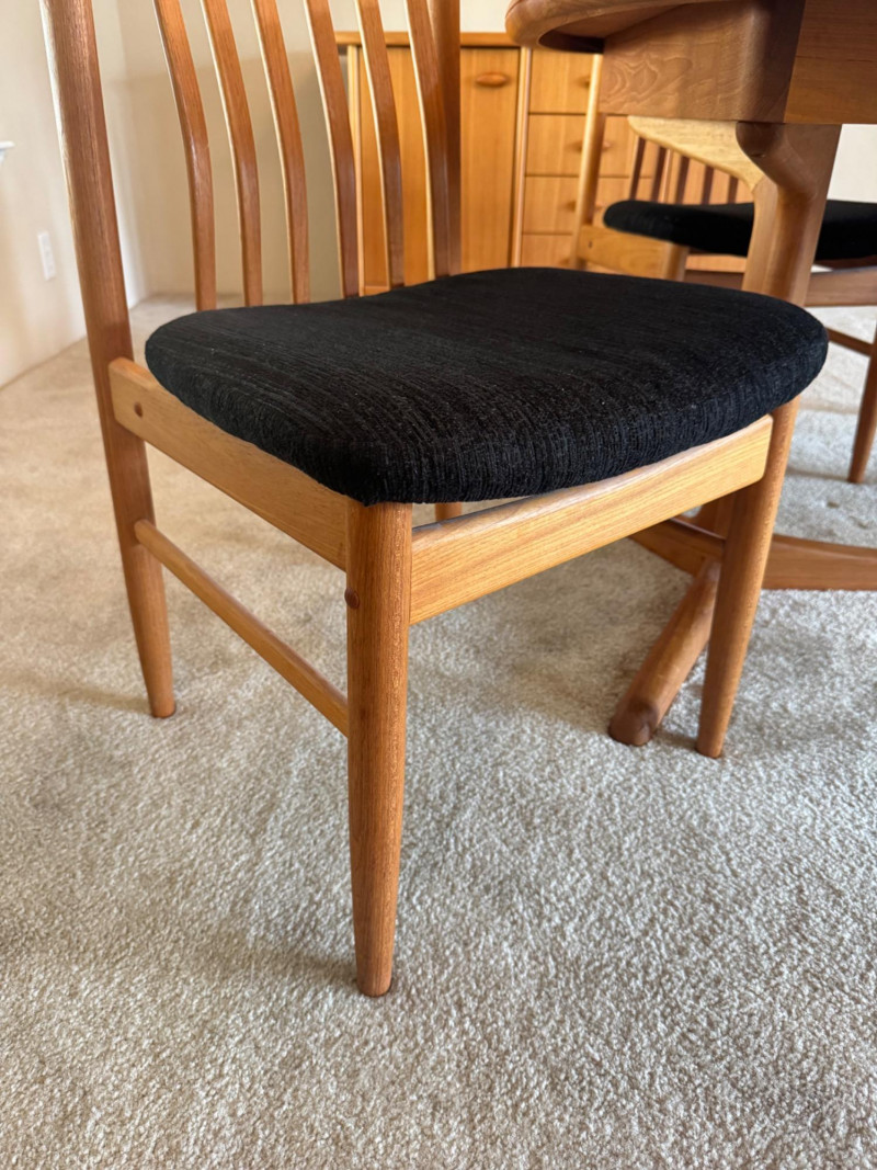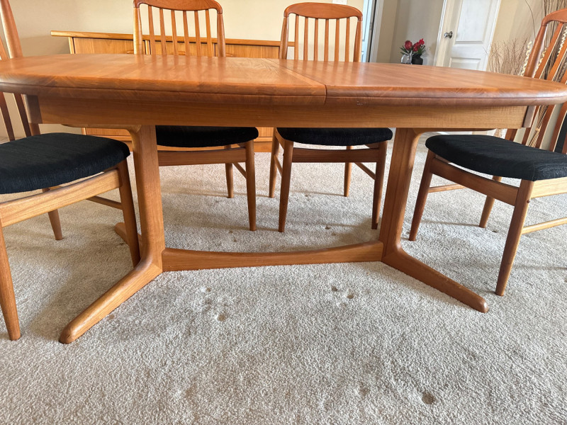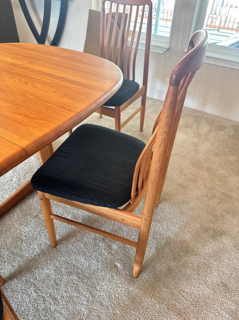 Mid-Century Benny Lindén Teak Dining Set w/ Pull-Out Extension Leaves. 41” Across 62” Long 28” Tall Built-in slide-out extension leaves. Made in Thailand. Condition: