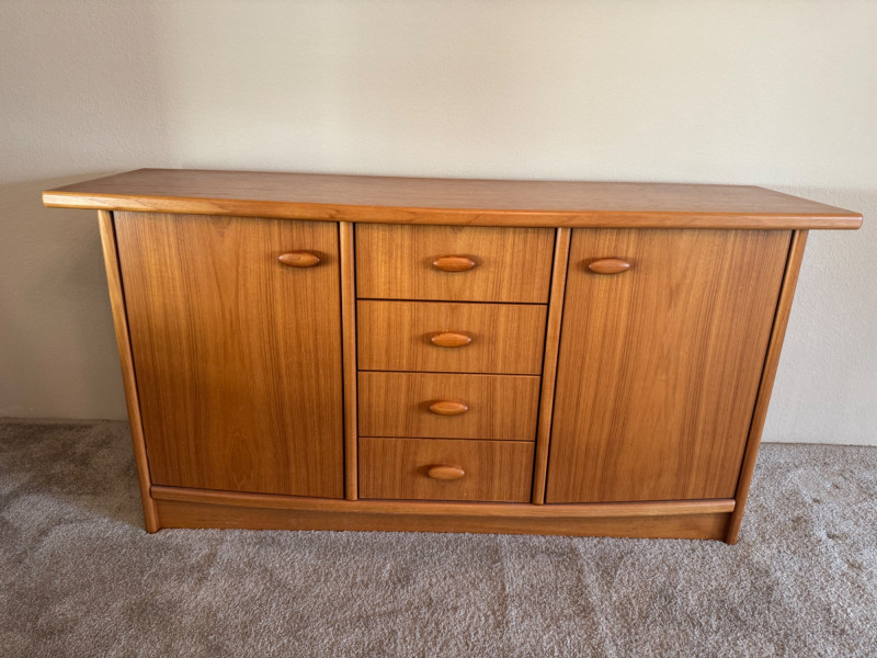 Danish Modern Teak Sideboard – 63.5” Long, Made in Denmark. Dimensions: 63.5” L x 20” D x 31.5” H Condition: