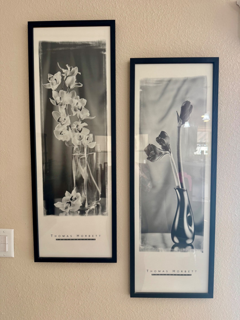 Pair of Thomas Horbett Floral Prints – Amaryllis & Orchid Stems. 13 x 47”