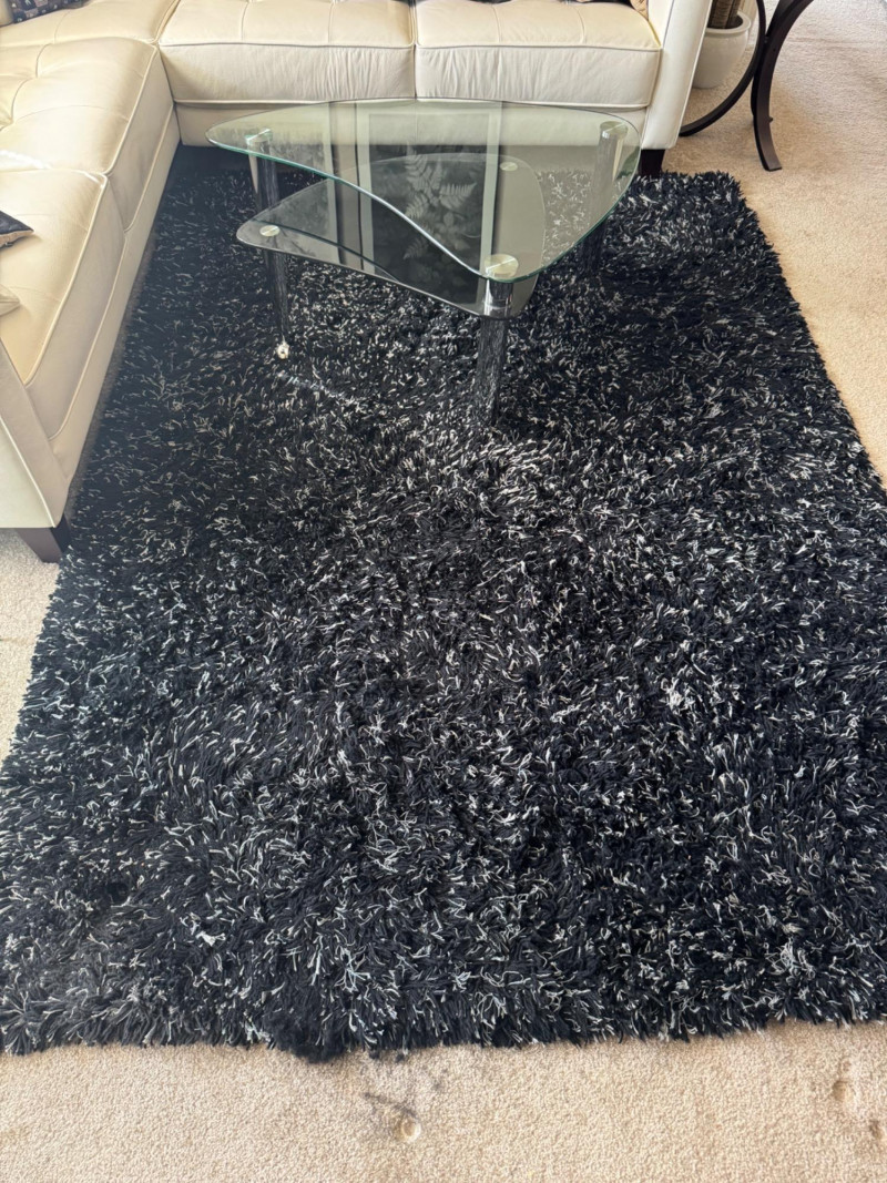 Black Woven Long Shag Rug – 70” x 97” Textured Area Carpet. Dimensions: 70” x 97”