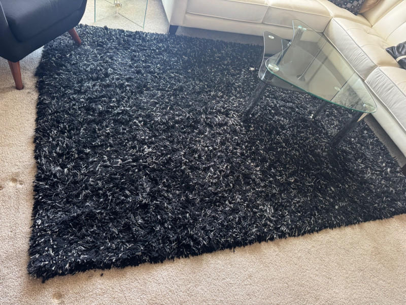 Lot # 6 - Black Woven Long Shag Rug – 70” x 97” Textured Area Carpet