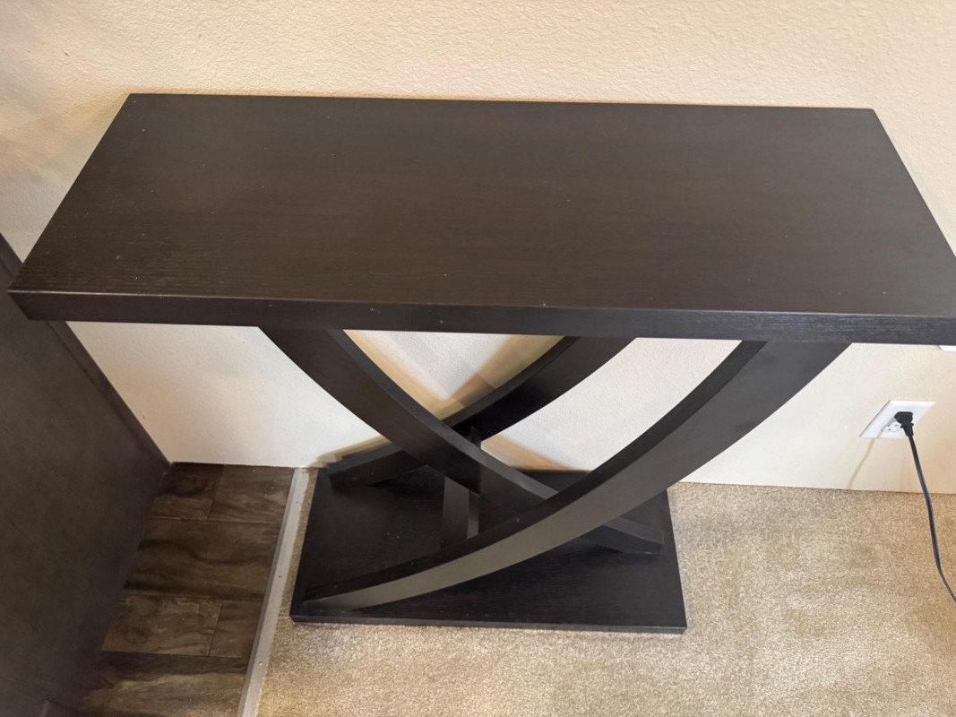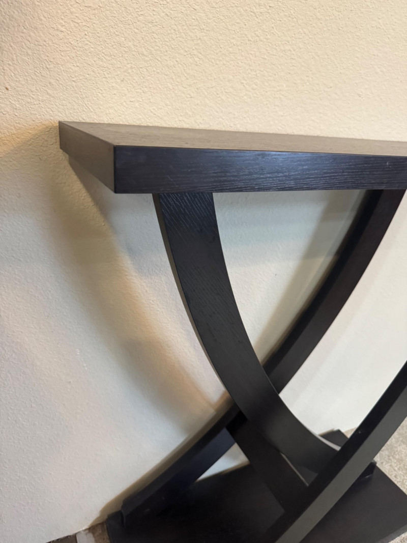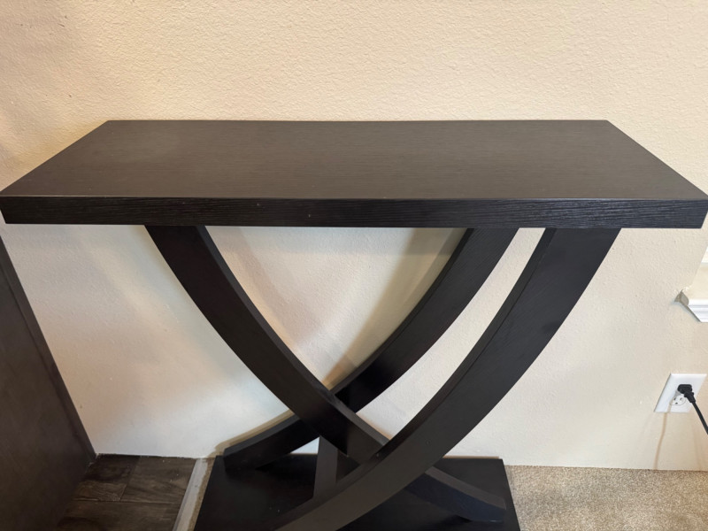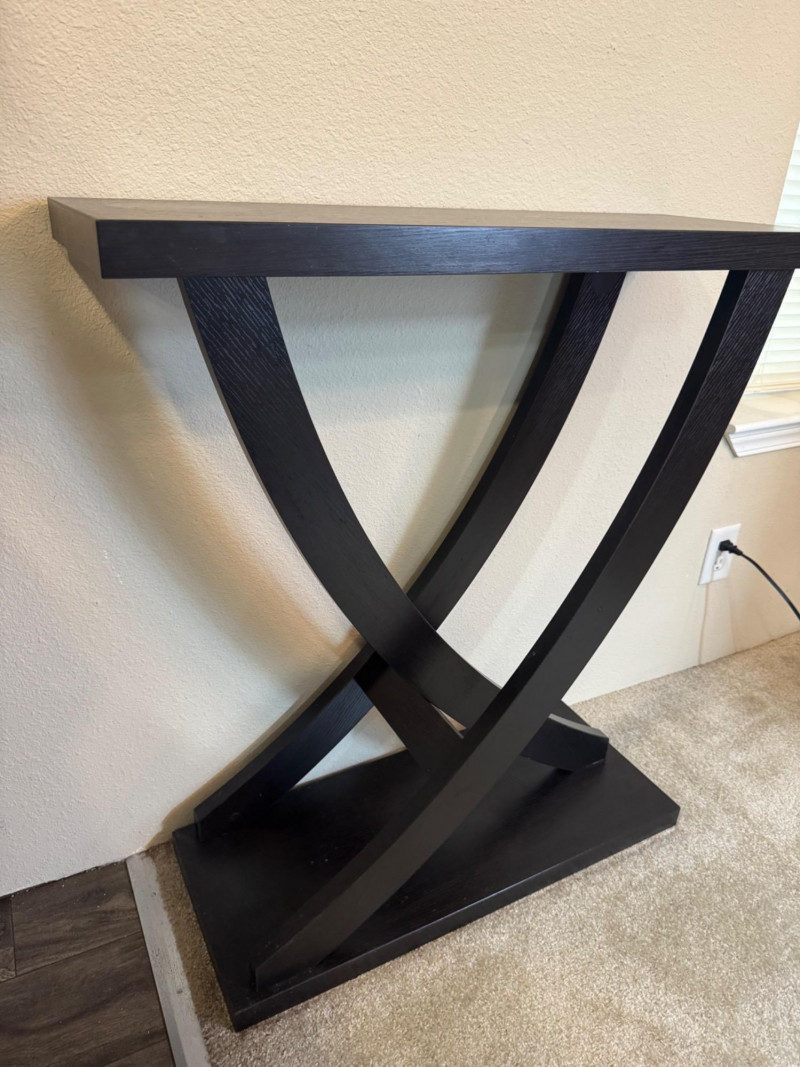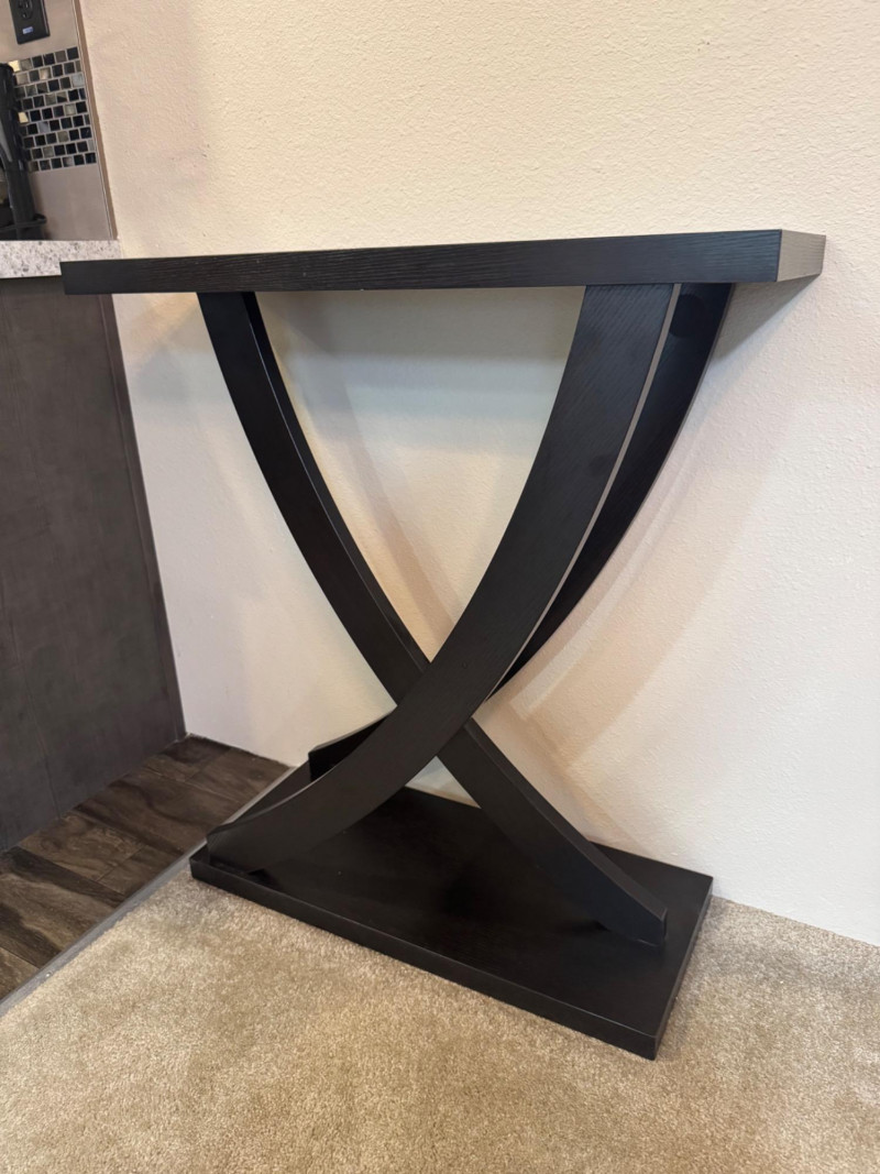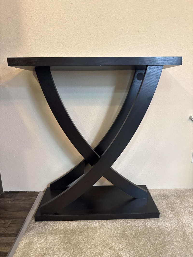 Contemporary Black Console Table – Curved X-Base, 31.5” Wide. Dimensions: