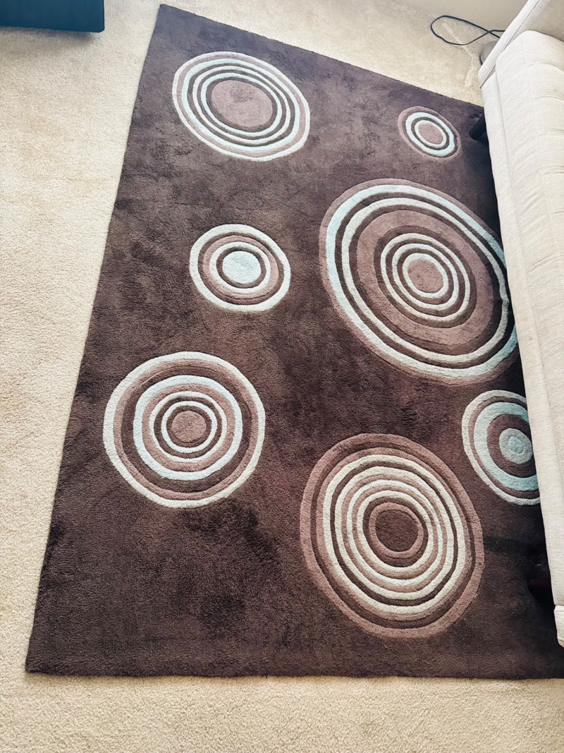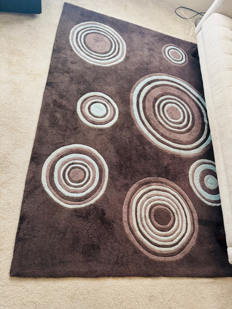 Circle Pattern Brown Rug - Similar to Linon Rugs Trio Collection. 60 x 84”