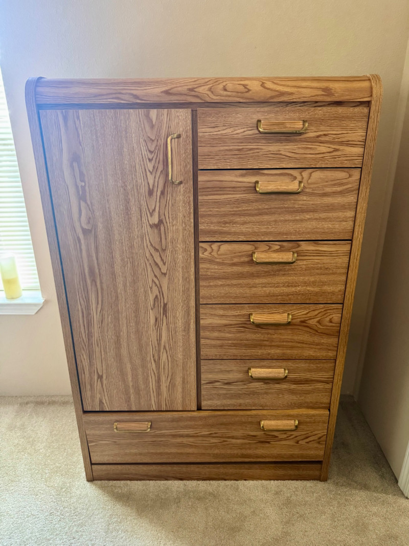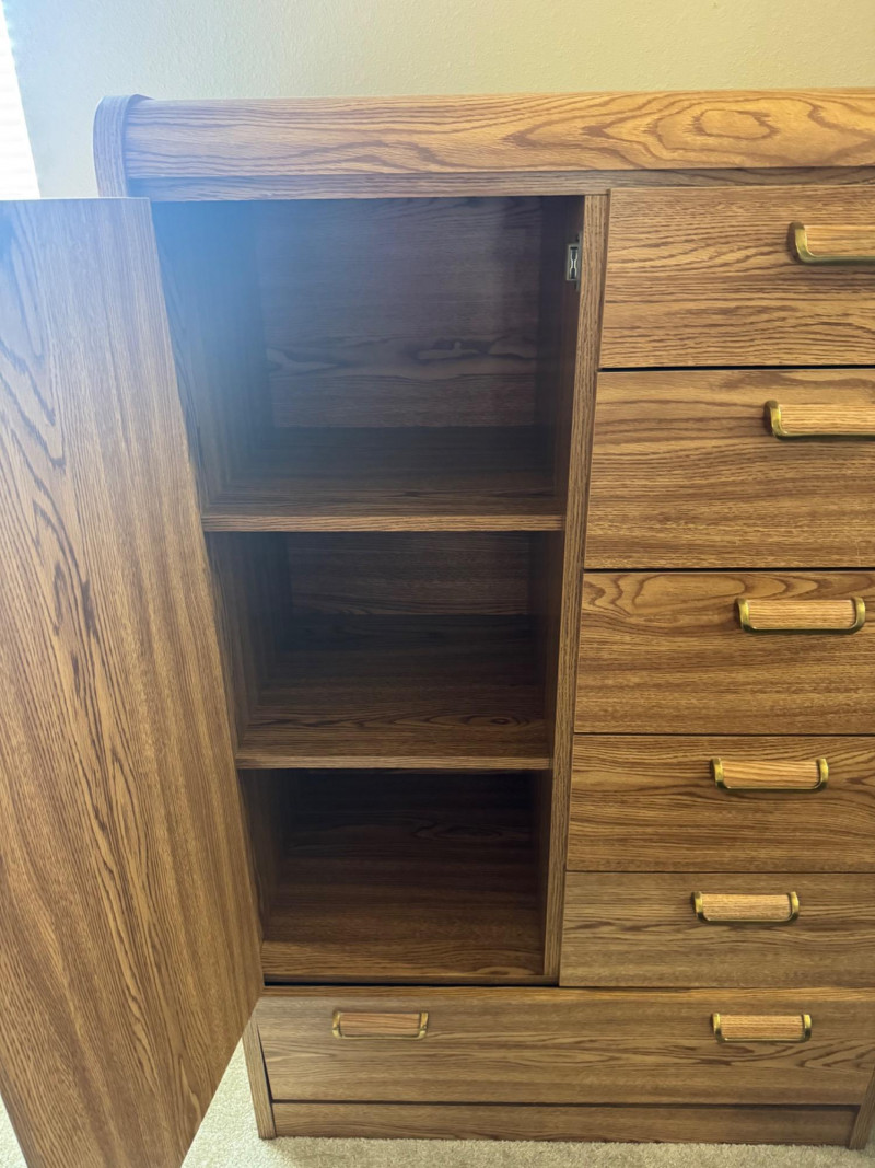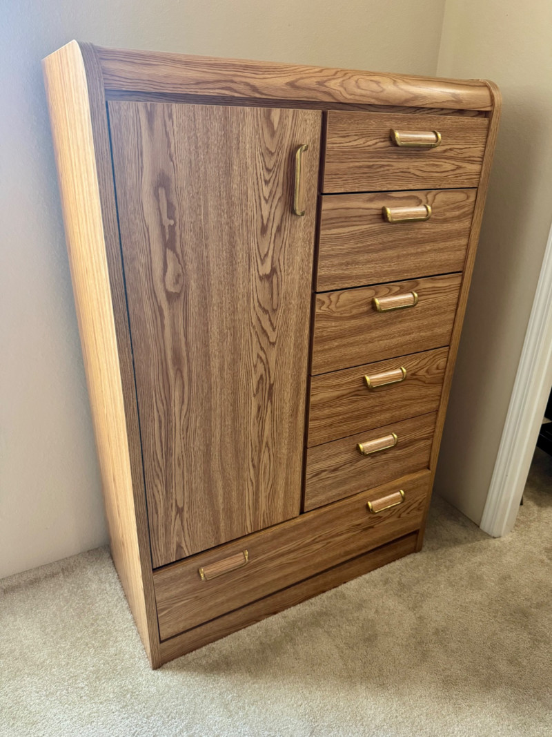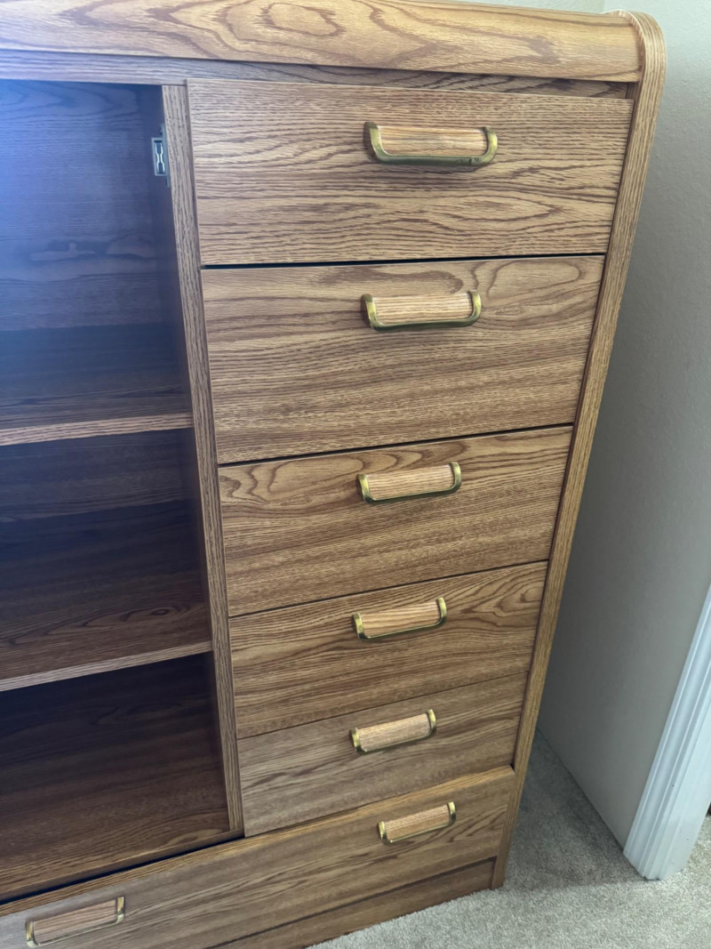 Lot # 28 - Tall Cabinet w/ Drawers & Shelves – Wood Grain Vinyl Finish