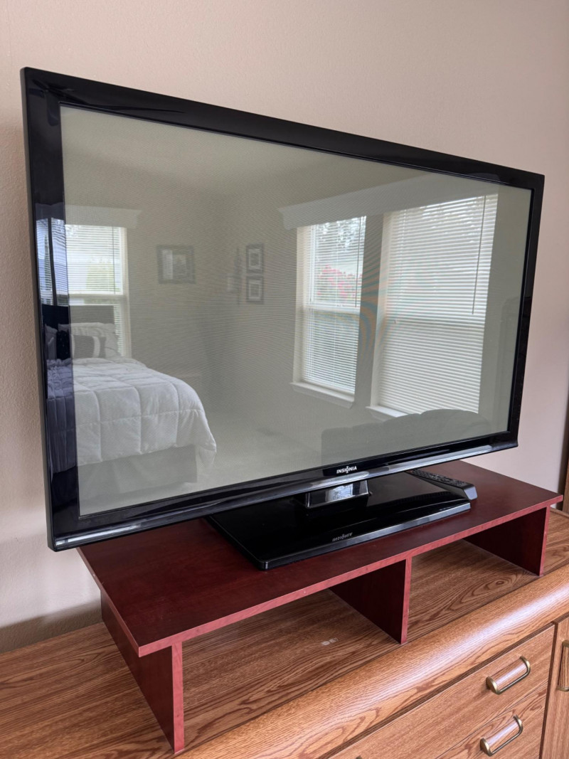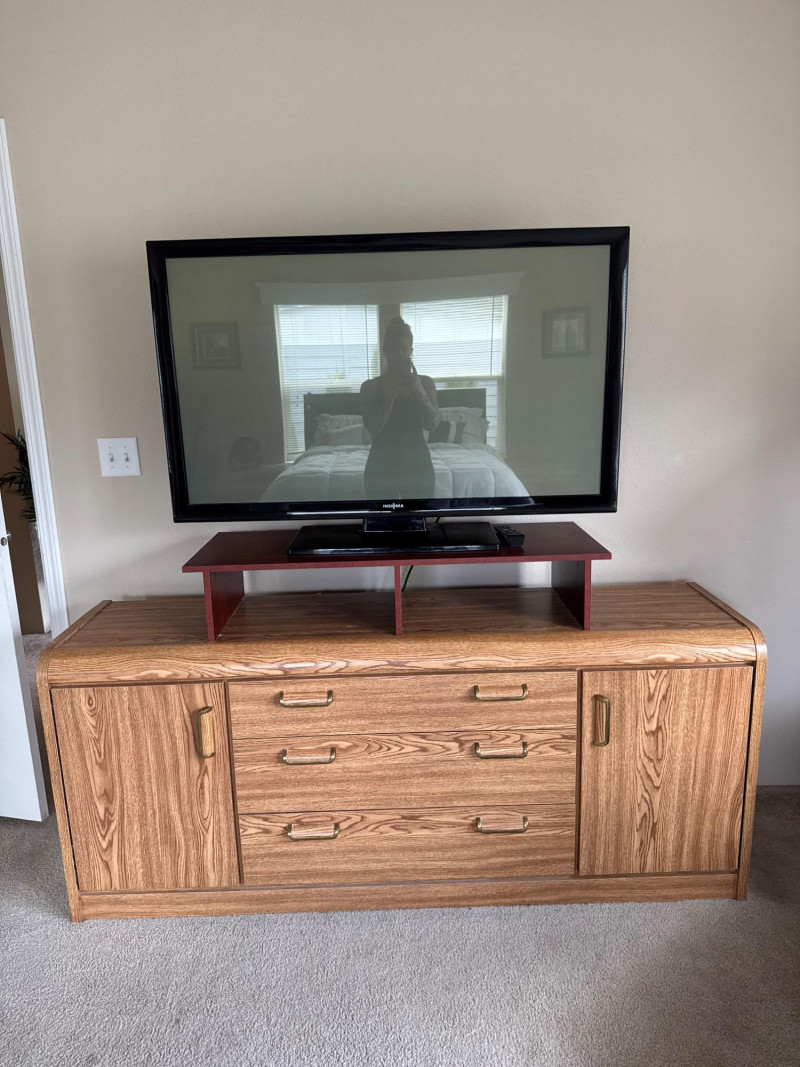 3-Piece Bedroom/Media Set: Dresser w/ Riser & 50" Insignia TV. Disclaimer: