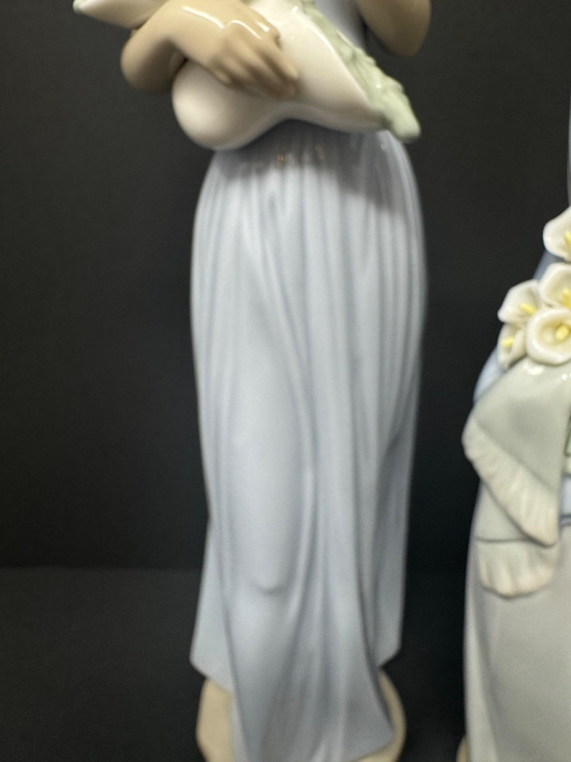 1999 NAO Lladro 'My Little Bouquet Girl' & Lladro Girl w/ Lilies. 9-12.5”