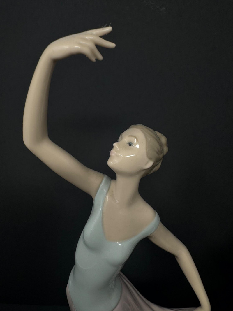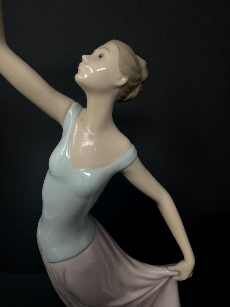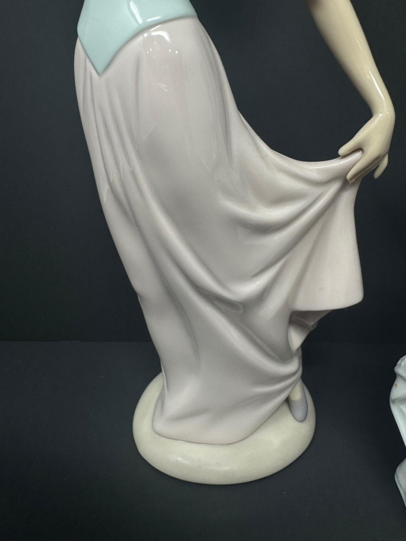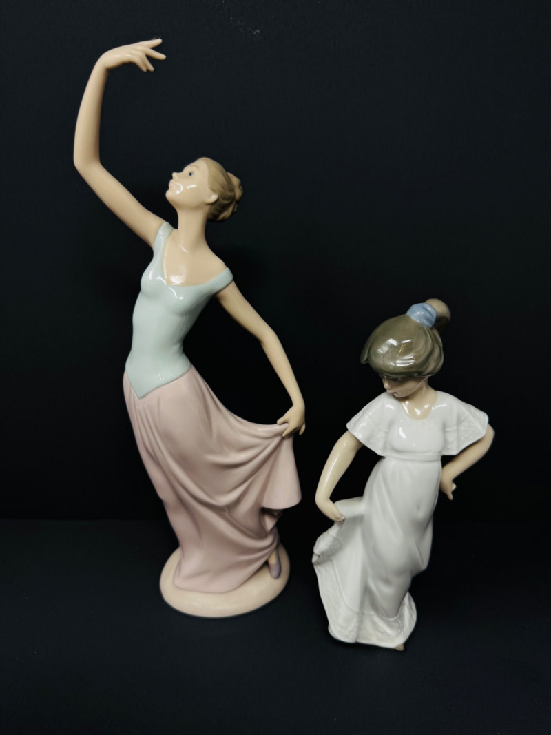 NAO Lladro Figurines: 'The Dance Is Over' (1994) & 'How Pretty' (1989). 9-13.5”