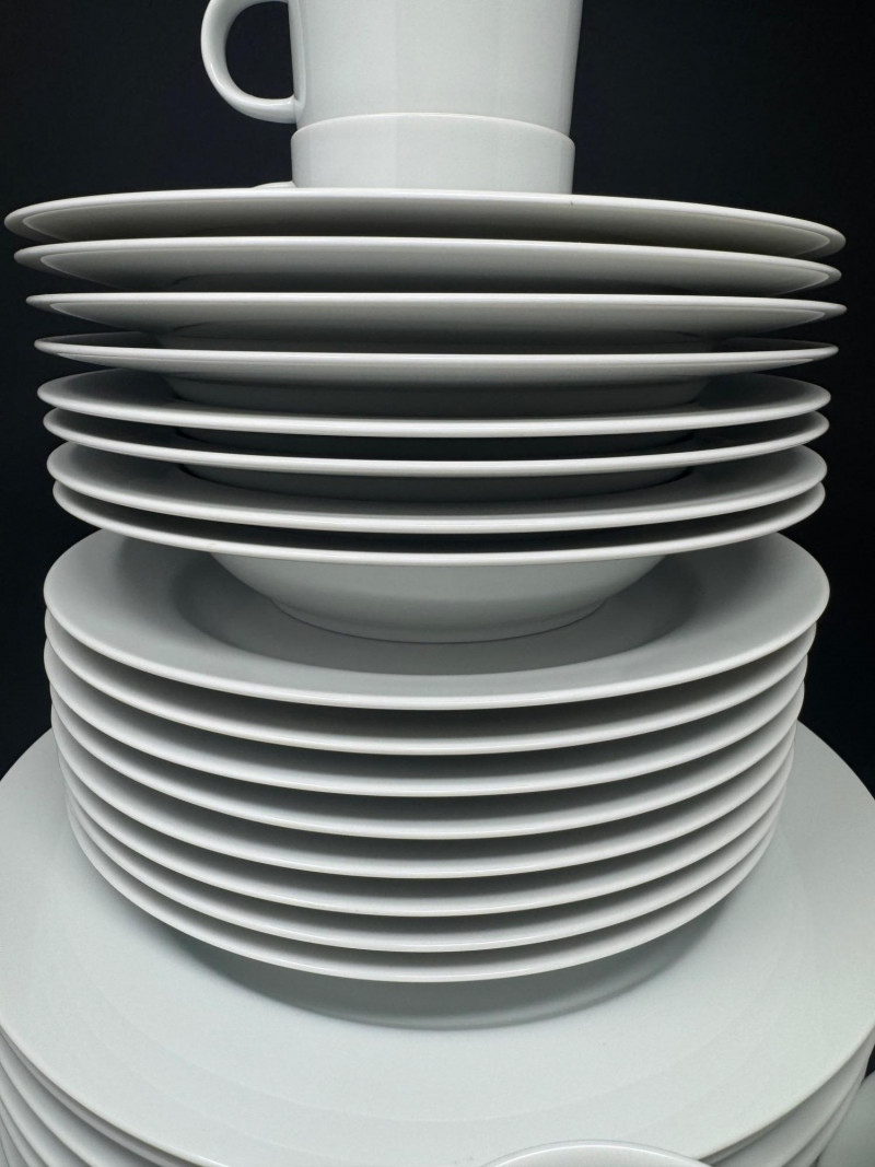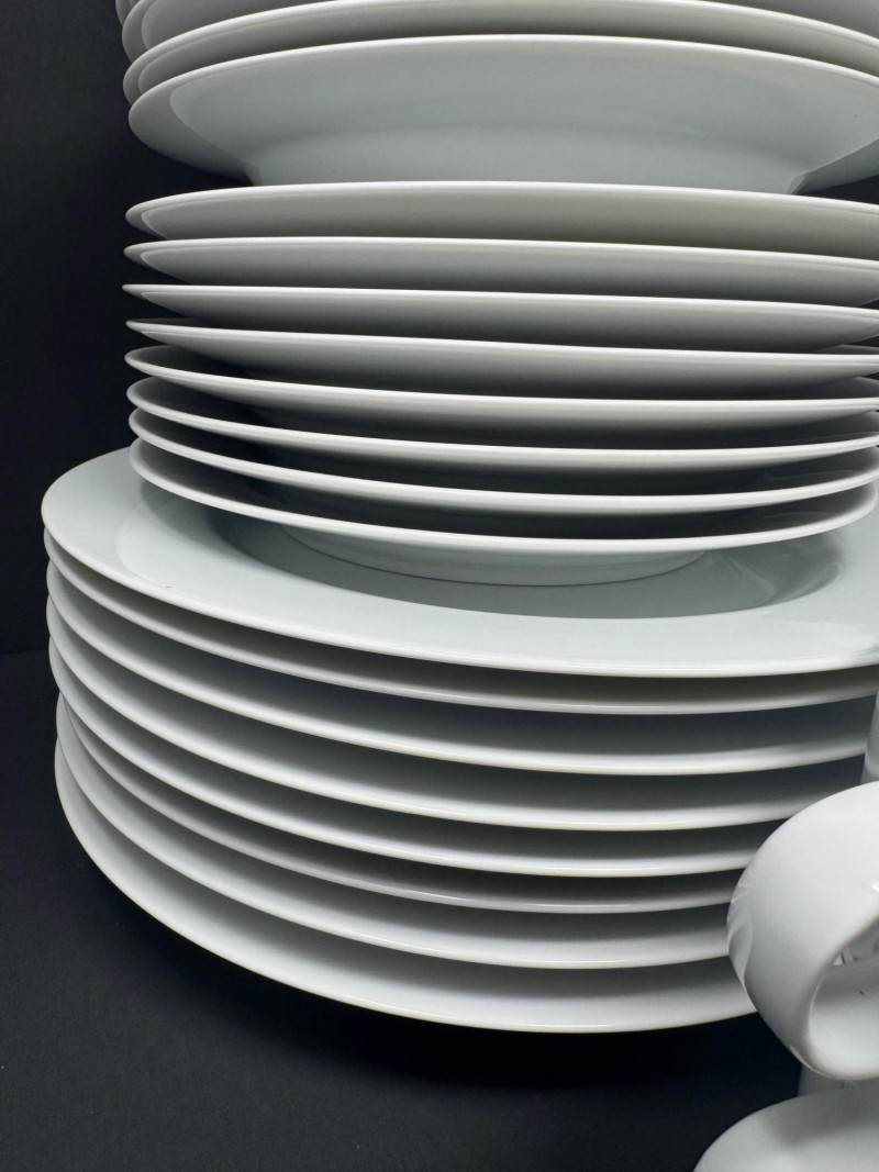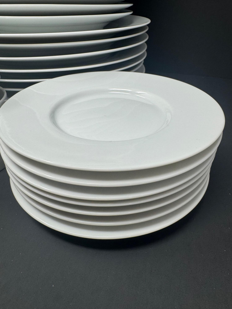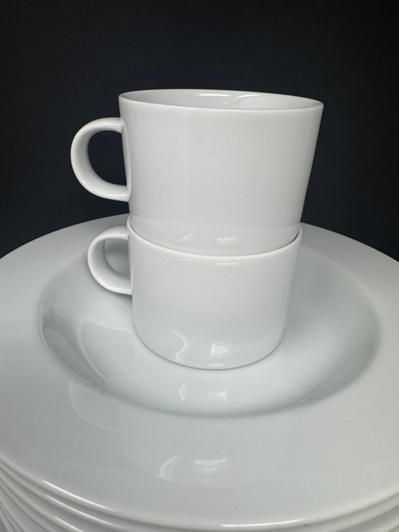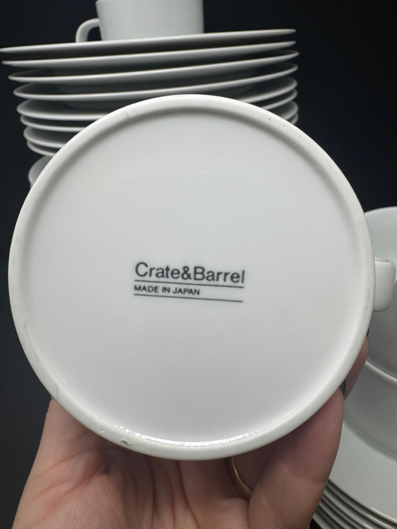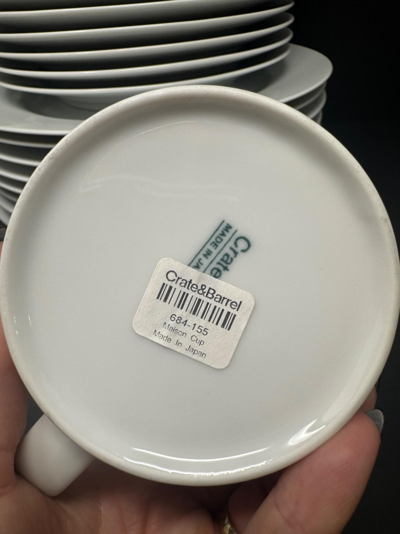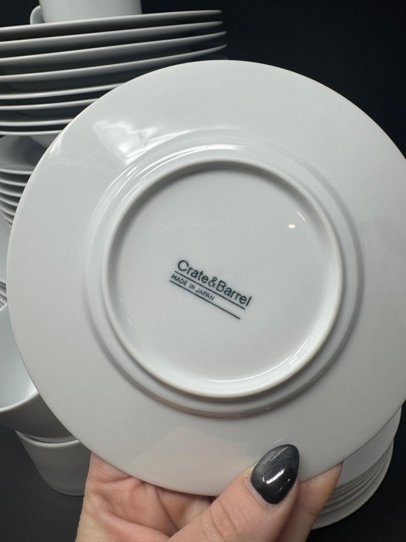 Crate & Barrel White Dinnerware Set for 8 (6 Cups, 7 Saucers) - Japan.