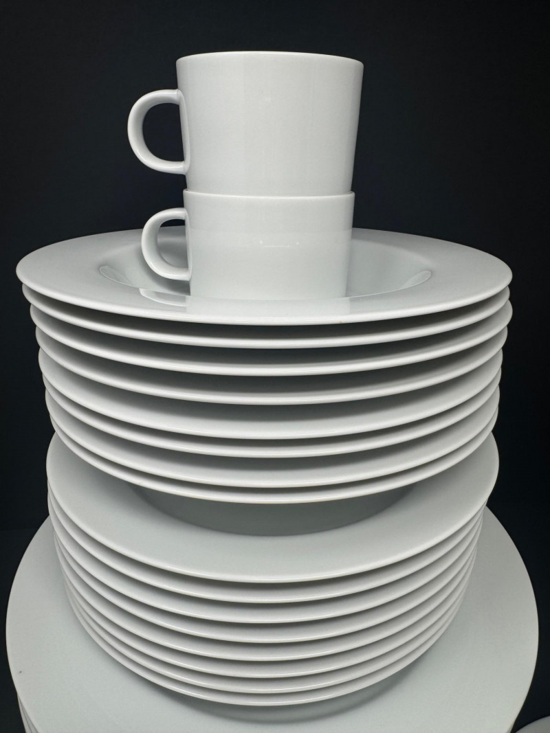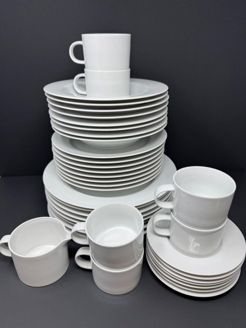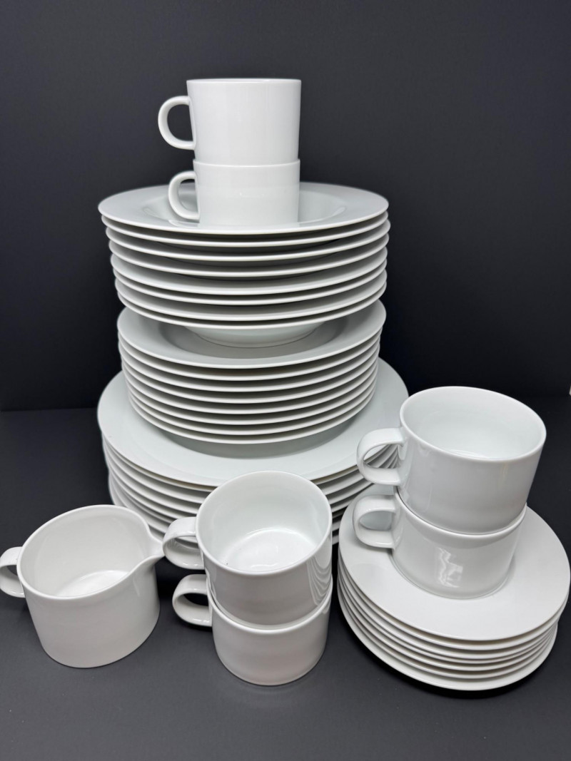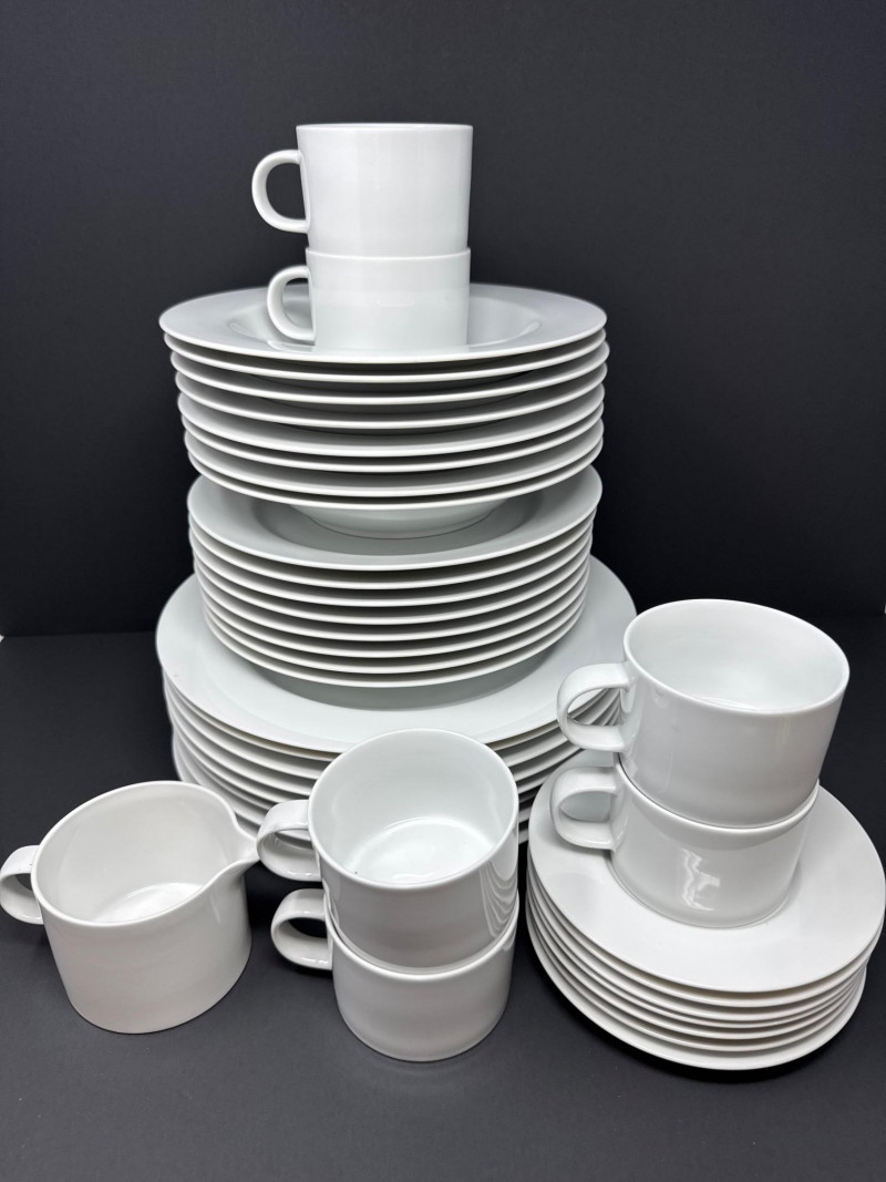 Lot # 57 - Crate & Barrel White Dinnerware Set for 8 (6 Cups, 7 Saucers) - Japan