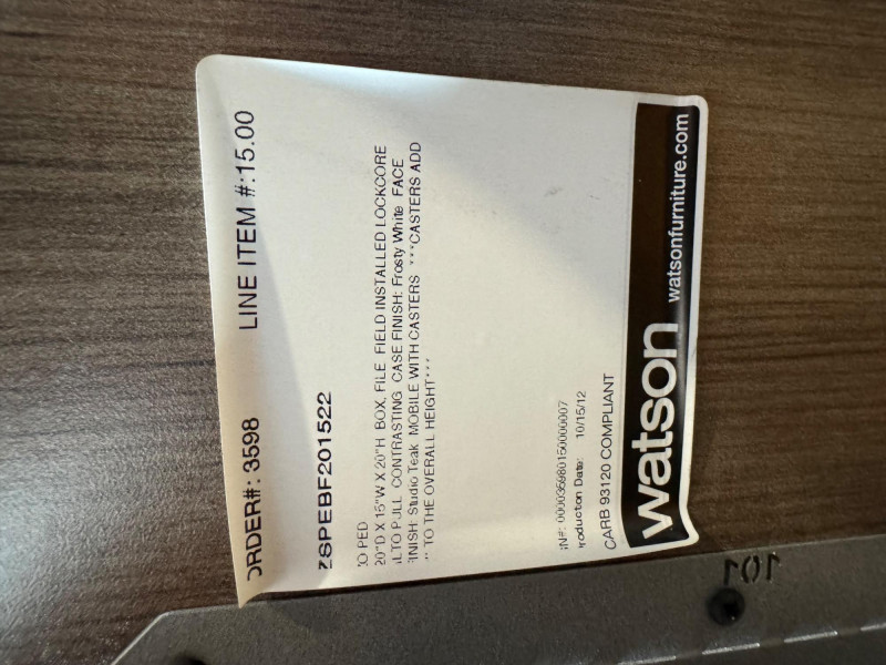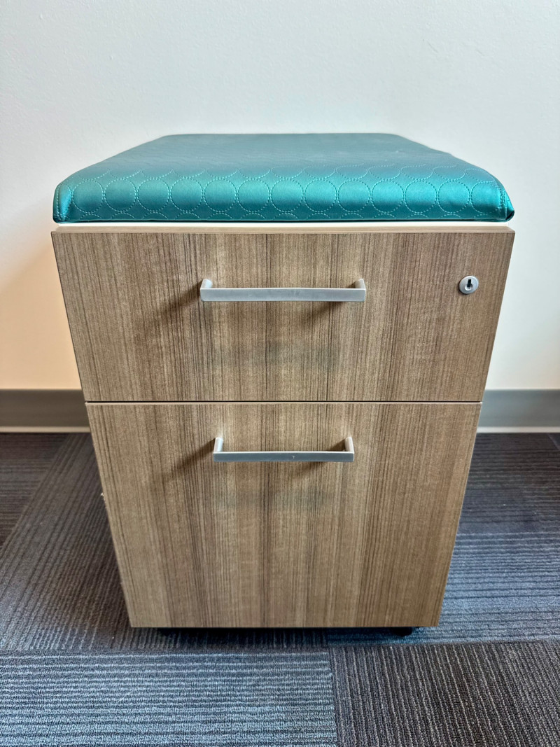 Watson 2-Drawer Mobile File Cabinet w/ Padded Seat #1. 20"D x 15"W x 22"H Bidding on this lot is an agreement that: (1.) You will have at least 2 capable, able bodied persons to lift and load at a minimum. (2.) You will bring a hand truck and/or any other tools needed to remove this item. If these steps are not followed your item will be forfeit and no refund given.