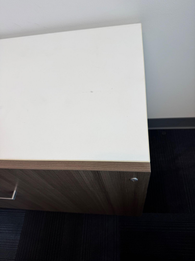 Lot # 6 - Modern 2-Drawer Wood-Look Lateral File Cabinet w/ White Top & Lock #1
