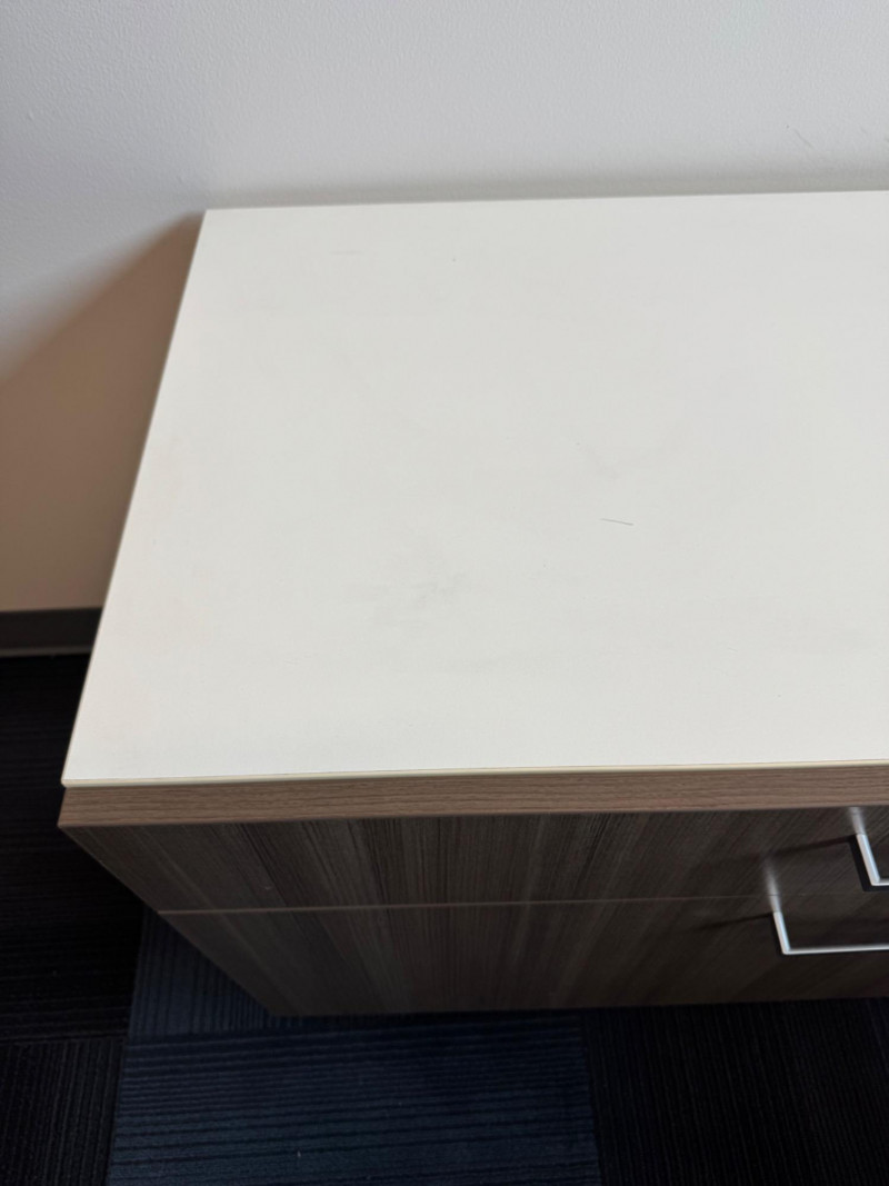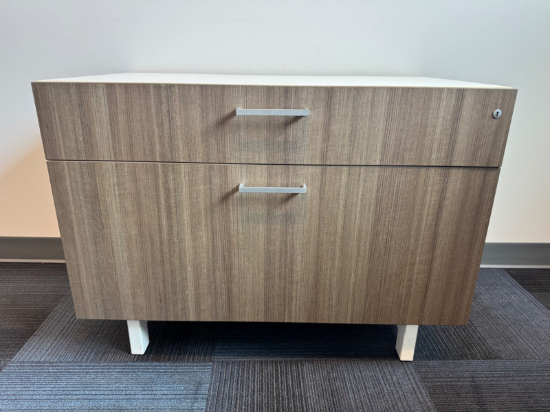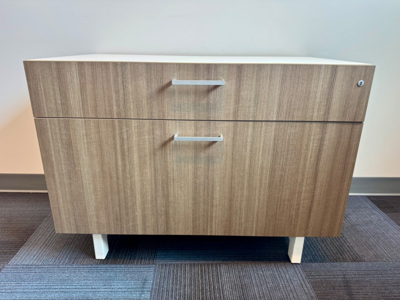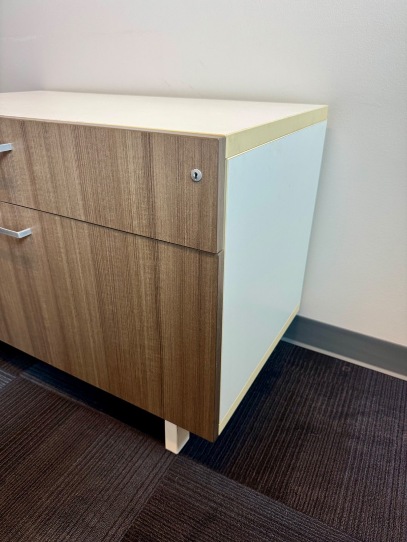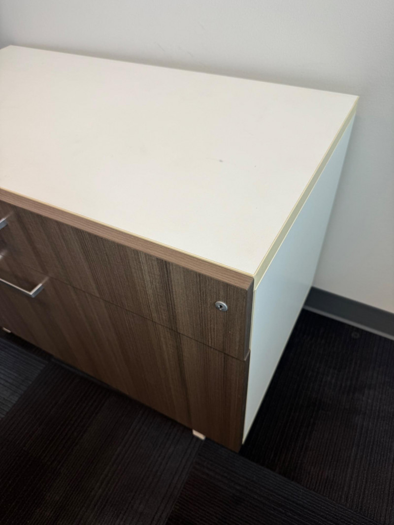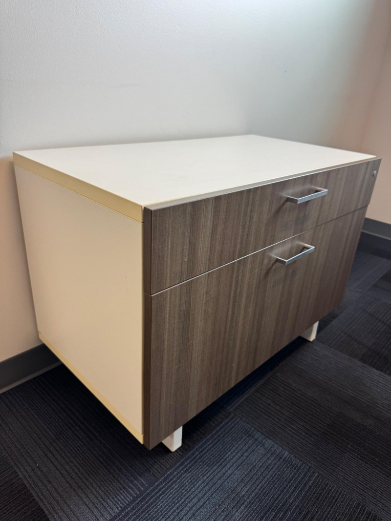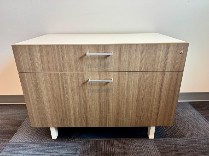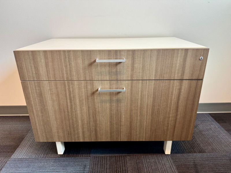 Modern 2-Drawer Wood-Look Lateral File Cabinet w/ White Top & Lock #1. 36” Wide 20” Deep 26” Tall Bidding on this lot is an agreement that: (1.) You will have at least 2 capable, able bodied persons to lift and load at a minimum. (2.) You will bring a hand truck and/or any other tools needed to remove this item. If these steps are not followed your item will be forfeit and no refund given.