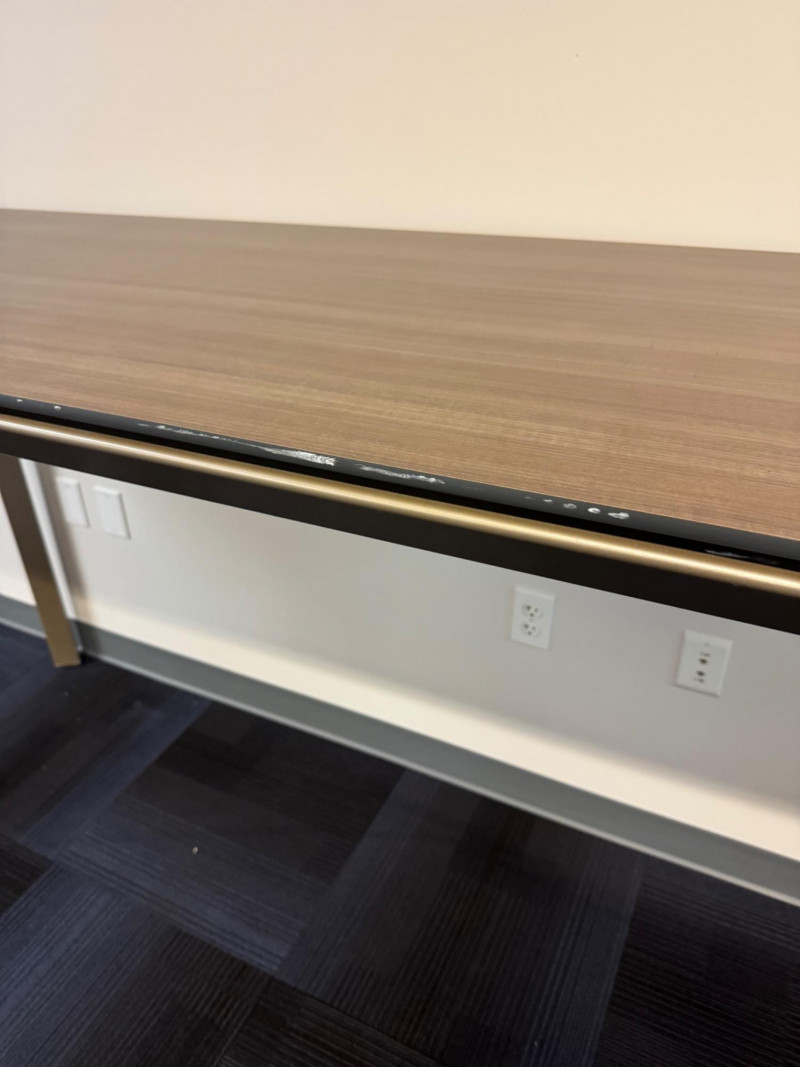 Watson Miro Counter Height Conference Table - Purchased for $1,000+ #1. Dimensions: 83.5" L x 27.5" D x 42" H Condition Disclaimer: Shows minor smudging along edge, as pictured. Structurally solid. Bidding on this lot is an agreement that: (1.) You will have at least 2 capable, able bodied persons to lift and load at a minimum. (2.) You will bring a hand truck and/or any other tools needed to remove this item. If these steps are not followed your item will be forfeit and no refund given.