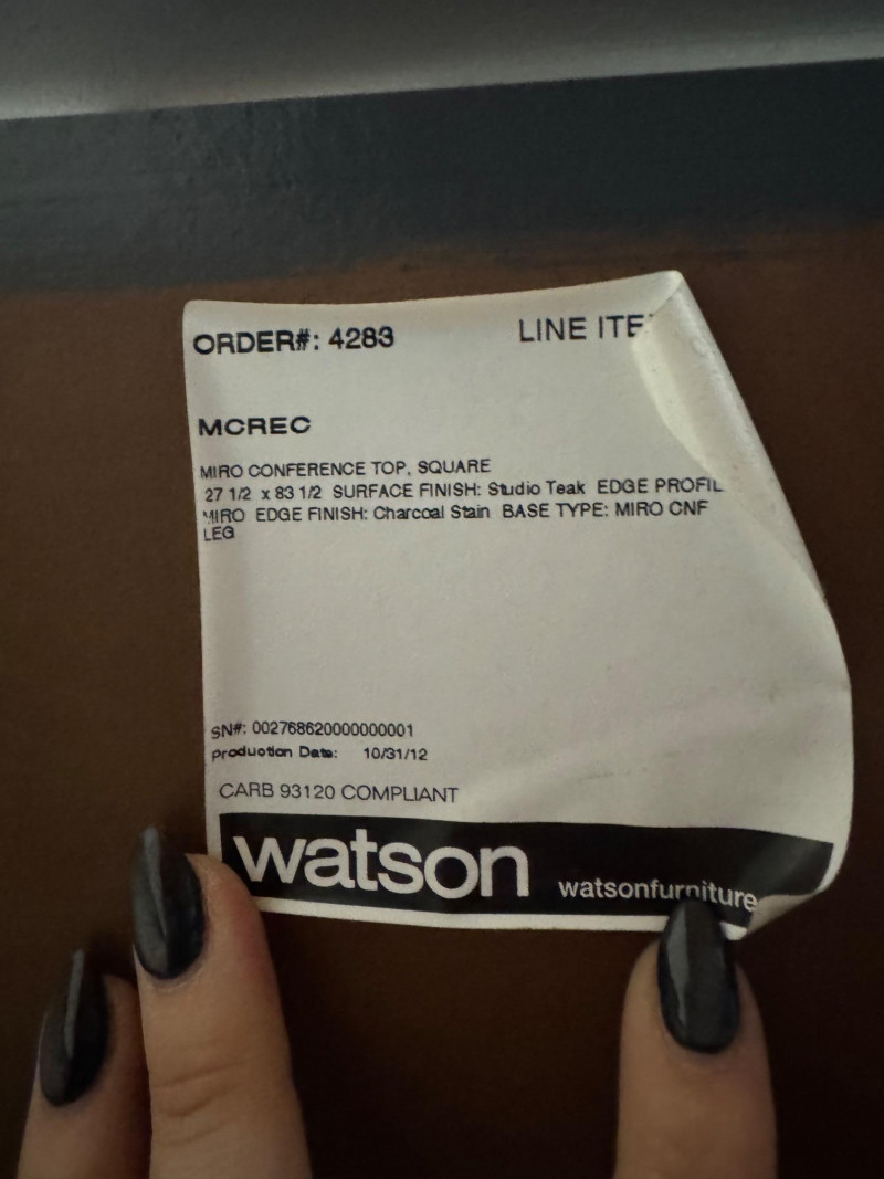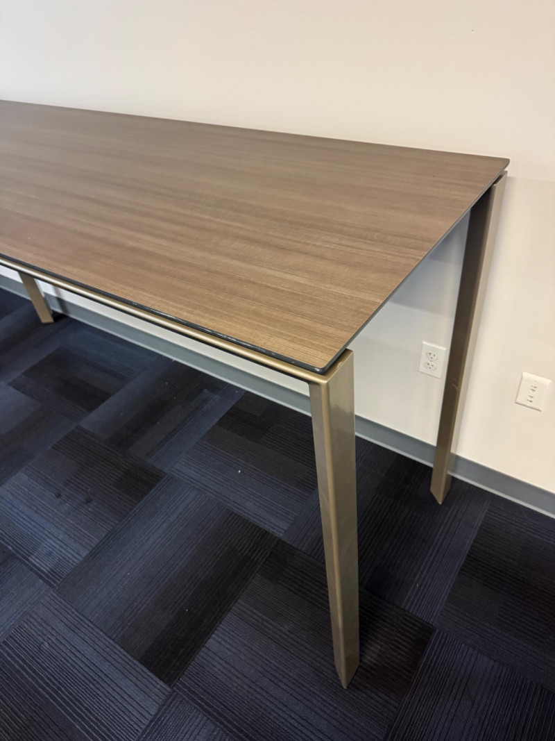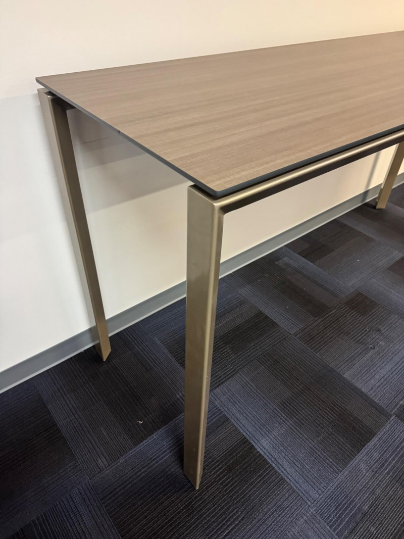Watson Miro Counter Height Conference Table - Purchased for $1,000+ #4. Dimensions: 83.5" L x 27.5" D x 42" H Note: This one is clean – no smudges or visible wear. Bidding on this lot is an agreement that: (1.) You will have at least 2 capable, able bodied persons to lift and load at a minimum. (2.) You will bring a hand truck and/or any other tools needed to remove this item. If these steps are not followed your item will be forfeit and no refund given.