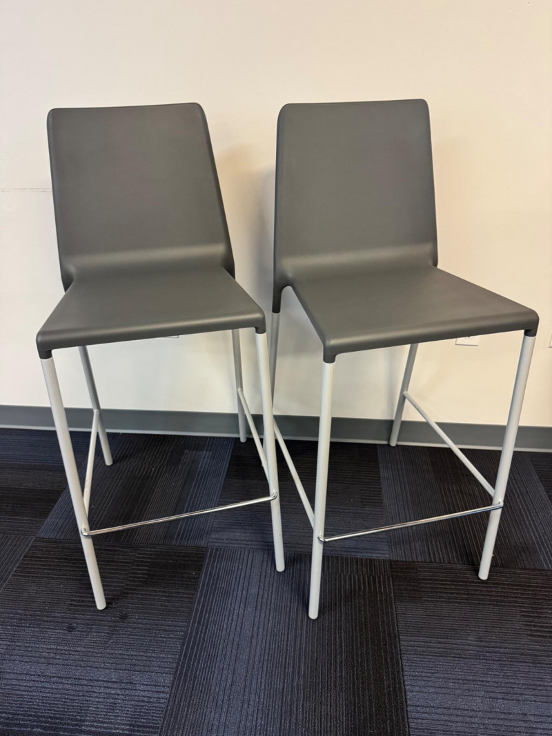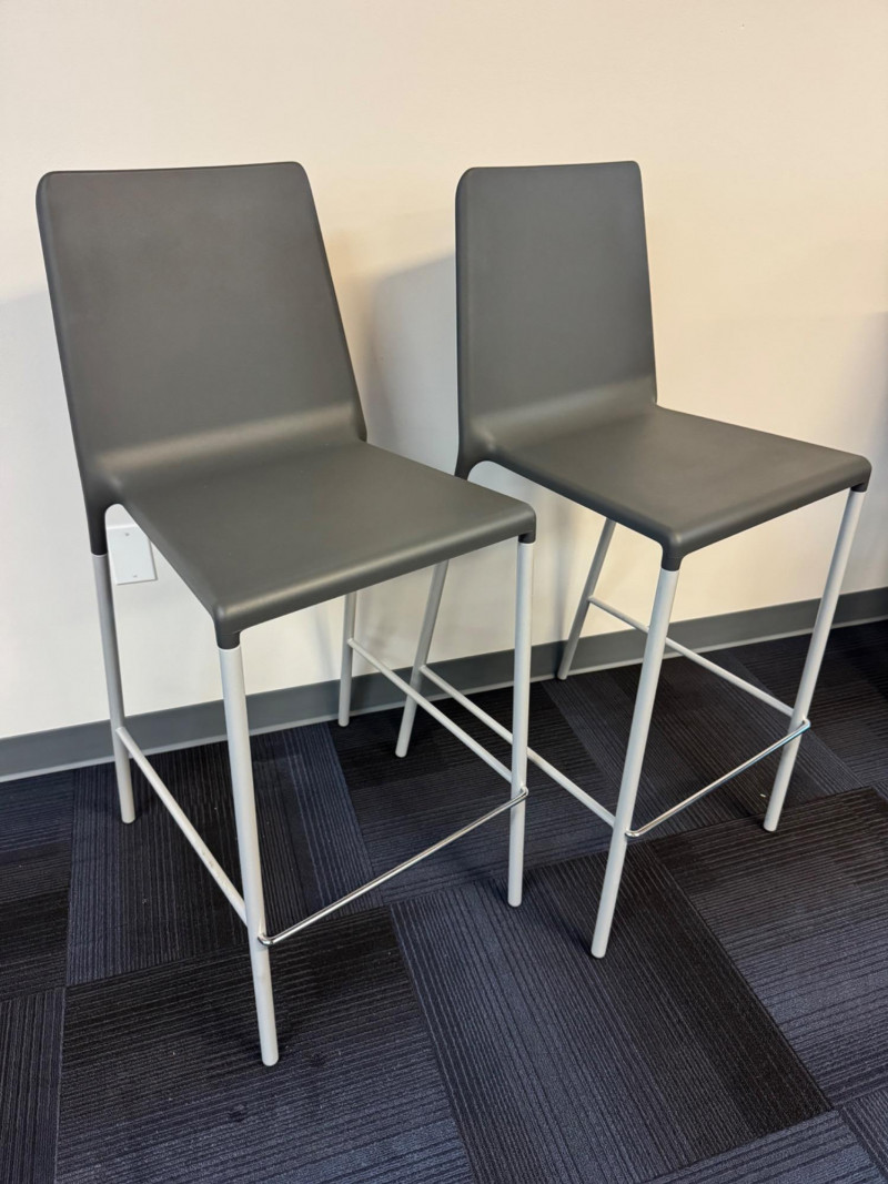 Set 8 – Allermuir Kojak Bar Stools (2) – Purchased Price $700+ Pair. 17” Wide 17” Deep 29” Tall Seat Height Originally purchased at $354 per stool ($708 per pair). Color: Dark Grey Seat / Regal Silver Frame