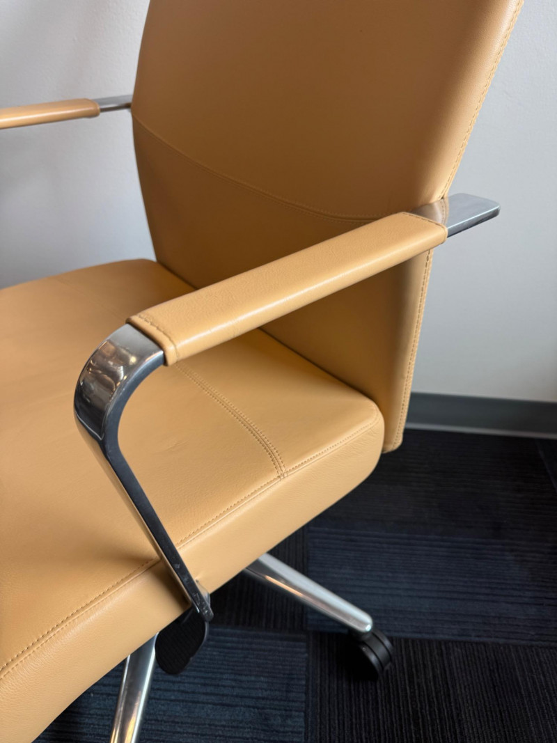Keilhauer VANILLA 5463ST Office Chair – Leather, Aluminum Arms #5. Note: Minor variations may exist among chairs; all are in great condition. List price online is $1,600+. Source. Dimensions: Features: Model: VANILLA-5463ST by Keilhauer (Toronto, Canada) Mid-back with slim silhouette Polished aluminum arms with upholstered sleeves Swivel base with height adjustment Smooth-rolling casters and tilt function Bidding on this lot is an agreement that: (1.) You will have at least 2 capable, able bodied persons to lift and load at a minimum. (2.) You will bring a hand truck and/or any other tools needed to remove this item. If these steps are not followed your item will be forfeit and no refund given.
