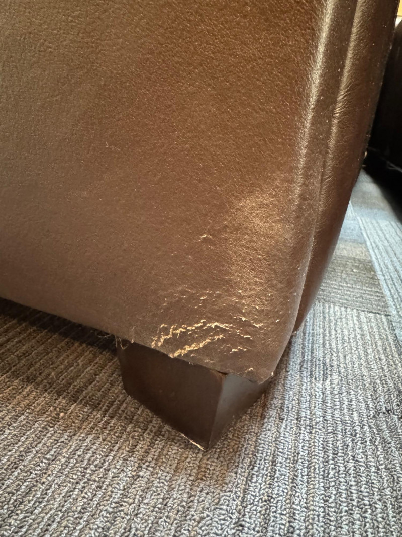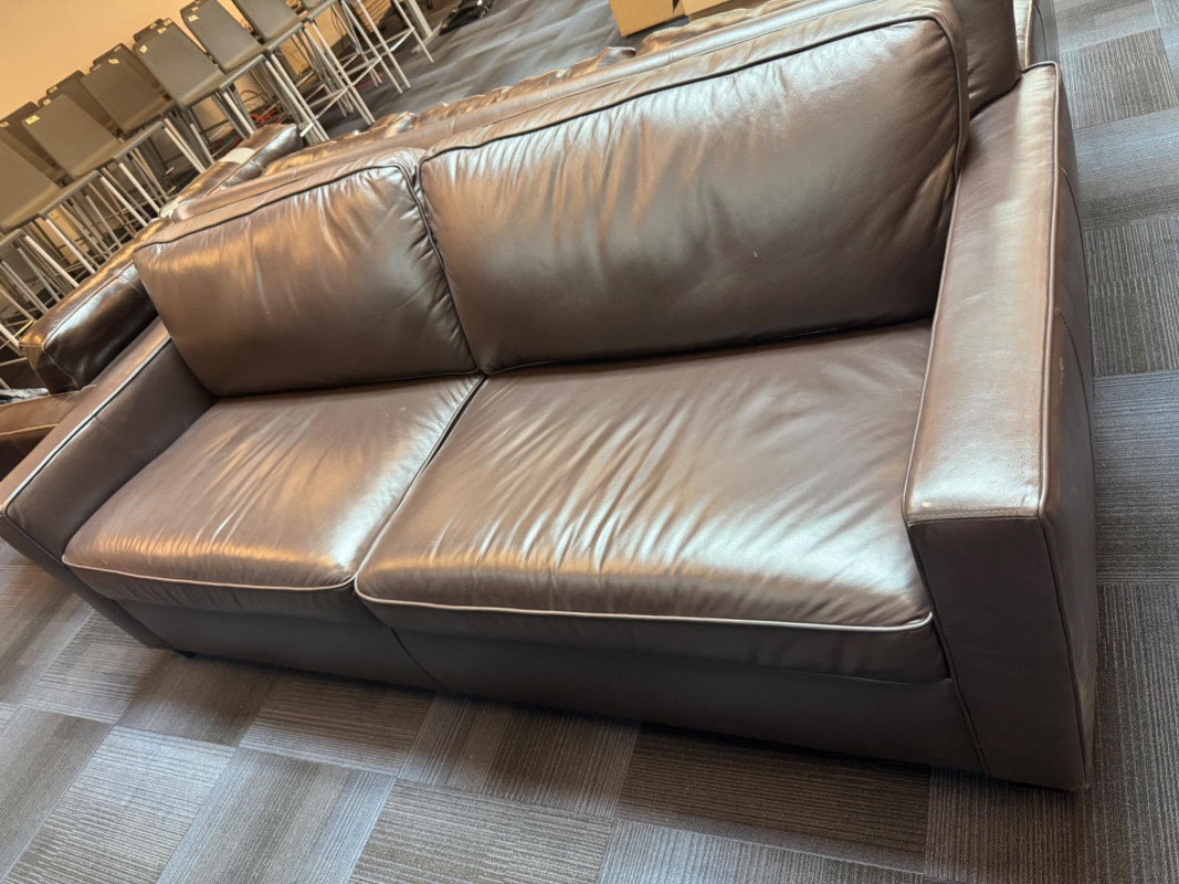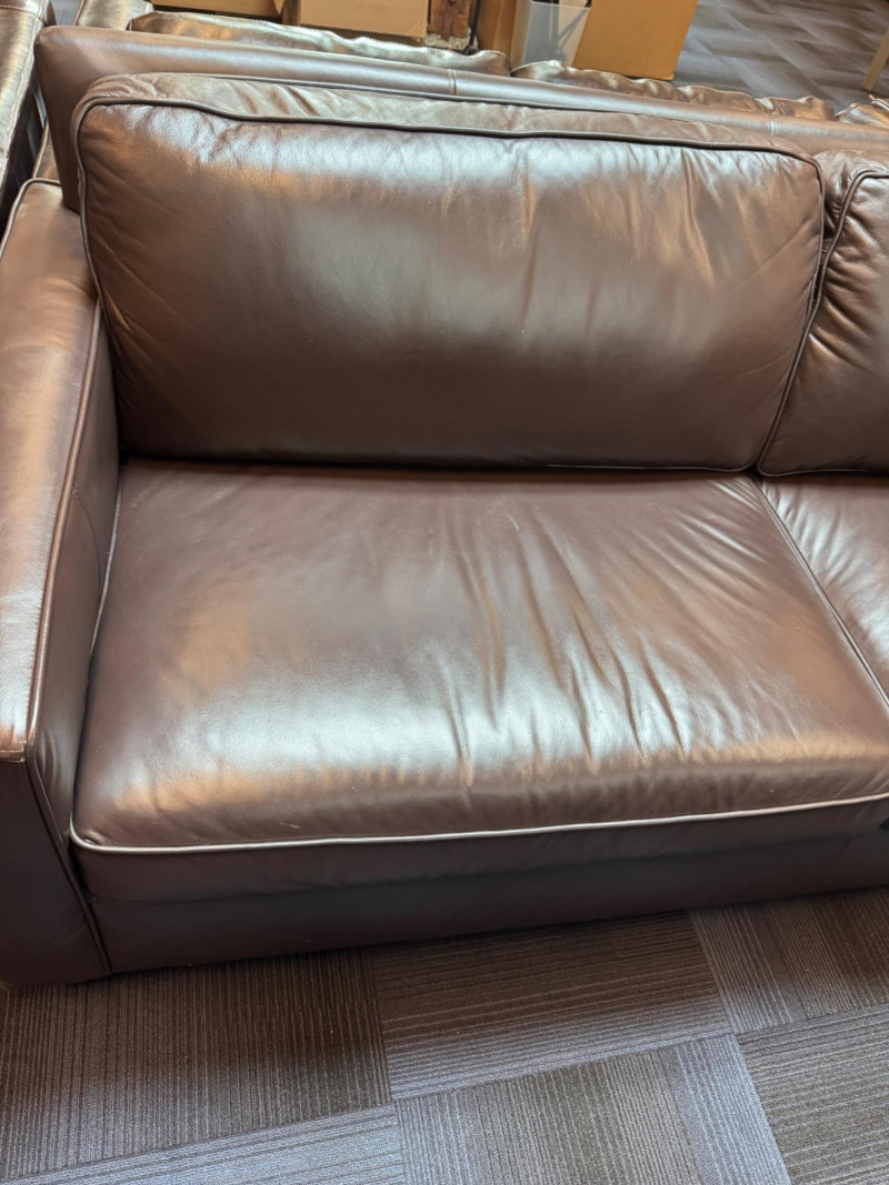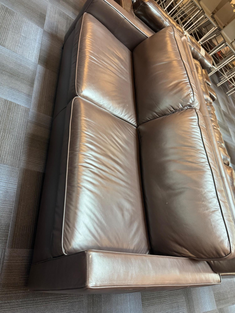 Pottery Barn Turner Square Arm Leather Sofa, Legacy – Retails $3,000+ Warm Legacy color, similar to Pottery Barn Turner “Tobacco”, Legacy. Note: Condition: Areas of wear on armrest and back bottom corner. Dimensions: Length: 85" Depth: 35" Seat Height: 17" Back Height: 34"