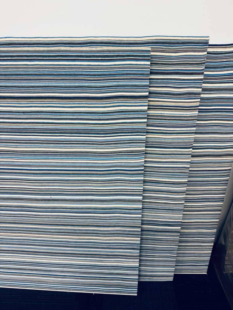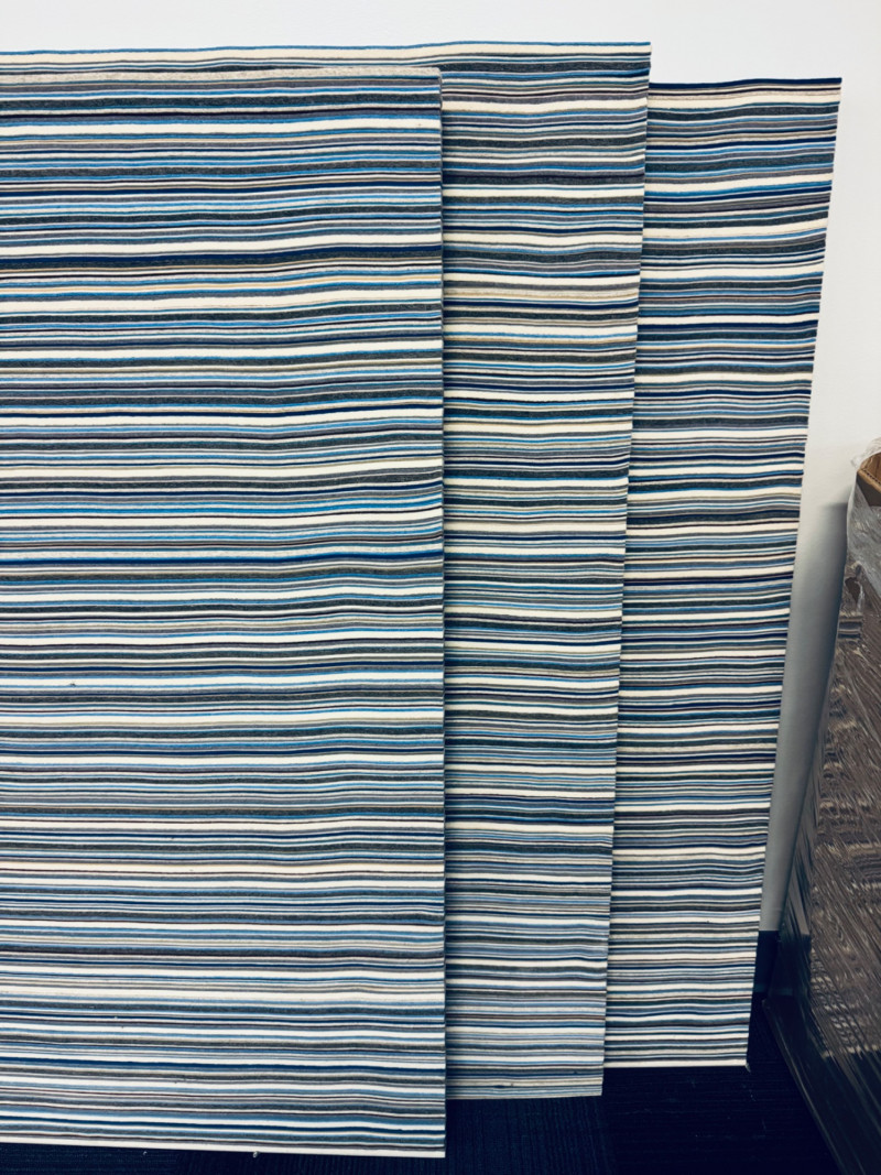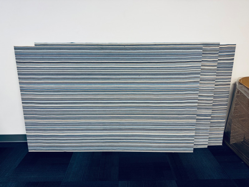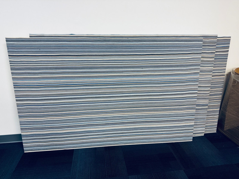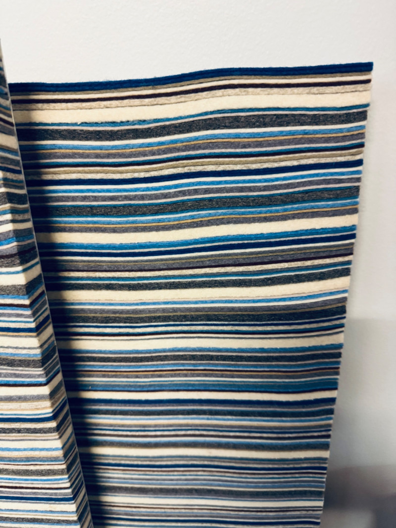 Set of 3 Large MCM Design Felt Acoustic Panels – 44"x71", Custom Made. Each panel measures: 44" x 71" Colors: Blue, Grey, & Brown Tones