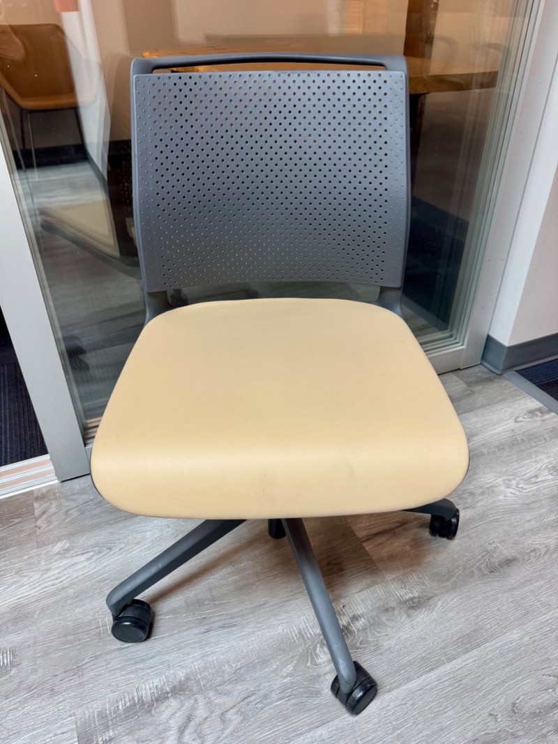 Allermuir Ad-Lib LiteWork Chair by Senator – Model ADL15, Leather #1. Features: Model: ADL15 by Senator (Ad-Lib LiteWork series) Perforated anthracite plastic backrest for breathability Upholstered seat in Bone Mammut fabric (light beige tone) Fixed-height rolling base with smooth casters Seat height: approx. 19” at lowest point Dimensions: 19” W x 20” D Please note: With bulk items, minor variations in smudges, marks, or light wear may occur between units. Any items with significant wear will be noted individually. Please assume general light wear consistent with previous office use. Bidding on this lot is an agreement that: (1.) You will have at least 2 capable, able bodied persons to lift and load at a minimum. (2.) You will bring a hand truck and/or any other tools needed to remove this item. If these steps are not followed your item will be forfeit and no refund given.