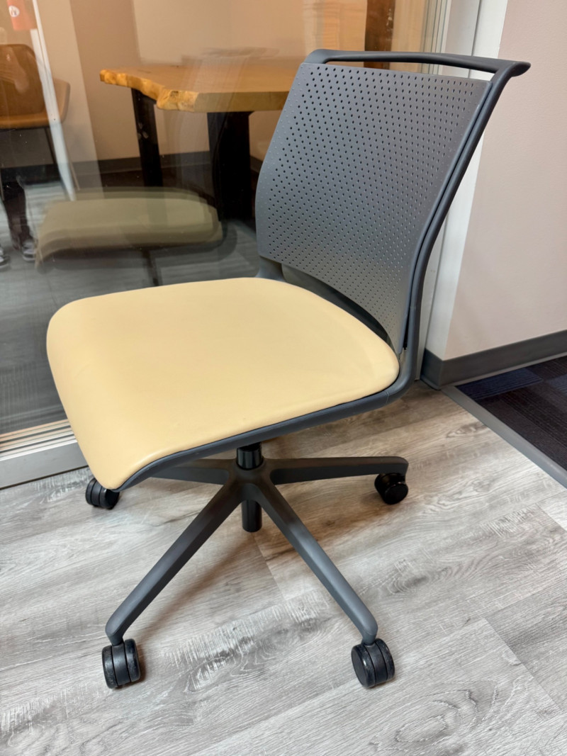 Allermuir Ad-Lib LiteWork Chair by Senator – Model ADL15, Leather #6. Features: Model: ADL15 by Senator (Ad-Lib LiteWork series) Perforated anthracite plastic backrest for breathability Upholstered seat in Bone Mammut fabric (light beige tone) Fixed-height rolling base with smooth casters Seat height: approx. 19” at lowest point Dimensions: 19” W x 20” D Please note: With bulk items, minor variations in smudges, marks, or light wear may occur between units. Any items with significant wear will be noted individually. Please assume general light wear consistent with previous office use. Bidding on this lot is an agreement that: (1.) You will have at least 2 capable, able bodied persons to lift and load at a minimum. (2.) You will bring a hand truck and/or any other tools needed to remove this item. If these steps are not followed your item will be forfeit and no refund given.