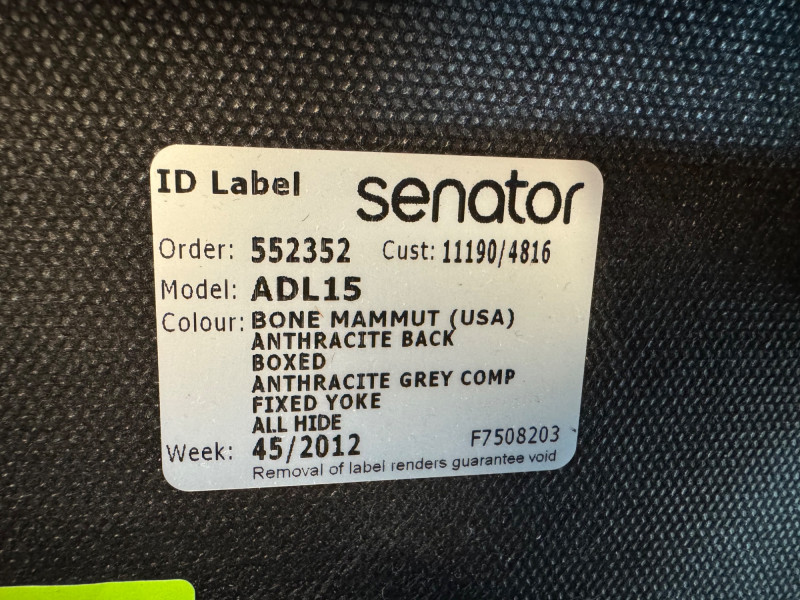 Allermuir Ad-Lib LiteWork Chair by Senator – Model ADL15, Leather #7. Features: Model: ADL15 by Senator (Ad-Lib LiteWork series) Perforated anthracite plastic backrest for breathability Upholstered seat in Bone Mammut fabric (light beige tone) Fixed-height rolling base with smooth casters Seat height: approx. 19” at lowest point Dimensions: 19” W x 20” D Please note: With bulk items, minor variations in smudges, marks, or light wear may occur between units. Any items with significant wear will be noted individually. Please assume general light wear consistent with previous office use. Bidding on this lot is an agreement that: (1.) You will have at least 2 capable, able bodied persons to lift and load at a minimum. (2.) You will bring a hand truck and/or any other tools needed to remove this item. If these steps are not followed your item will be forfeit and no refund given.