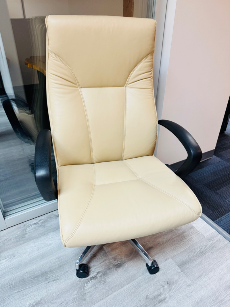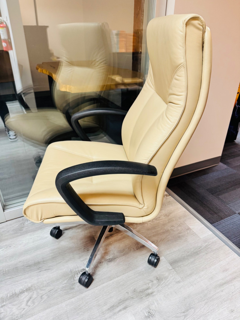 VIA Seating Heathrow Oversized Leather Executive Chair – $1,800+ #1. Features: Chrome-finish 5-star base with smooth-rolling casters Bidding on this lot is an agreement that: (1.) You will have at least 2 capable, able bodied persons to lift and load at a minimum. (2.) You will bring a hand truck and/or any other tools needed to remove this item. If these steps are not followed your item will be forfeit and no refund given.