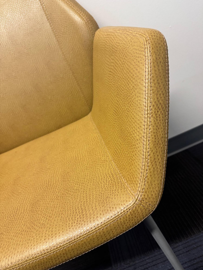 Keilhauer Cahoots 9071 4-Leg Base Chair – Purchased Price $600+ #2. Features: Designer: Keilhauer (Toronto, Canada) Model: Cahoots 9071 Slim metal legs with modern matte finish Dimensions: 26” W x 16.5” D x 18” seat height Back height: 34” tall Original retail price: $607 per chair Note: Upholstery material is likely leather or synthetic leather. Please review photos closely. Bidding on this lot is an agreement that: (1.) You will have at least 2 capable, able bodied persons to lift and load at a minimum. (2.) You will bring a hand truck and/or any other tools needed to remove this item. If these steps are not followed your item will be forfeit and no refund given.