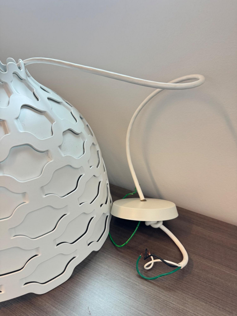 Maker: Louis Poulsen / Targetti Poulsen USA Inc. Dimensions: Approx. 12.5” tall x 13.5” wide Design Background: The LC Shutters lamp was designed by acclaimed Danish designer Louise Campbell for Louis Poulsen, as part of a mission to create warm, glare-free lighting that diffuses gently throughout a room. Inspired by the filtered light of a southern European evening, the lamp mimics a half-open shutter with layered cutouts that create a sculptural facade while concealing the bulb inside. Its unique design combines both nostalgic charm and contemporary function, earning accolades in lighting design.