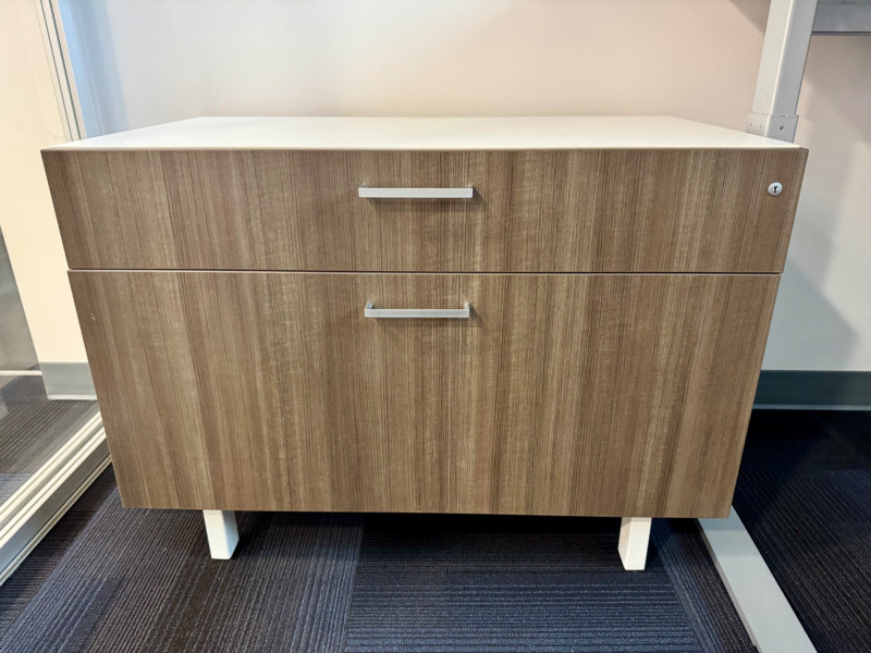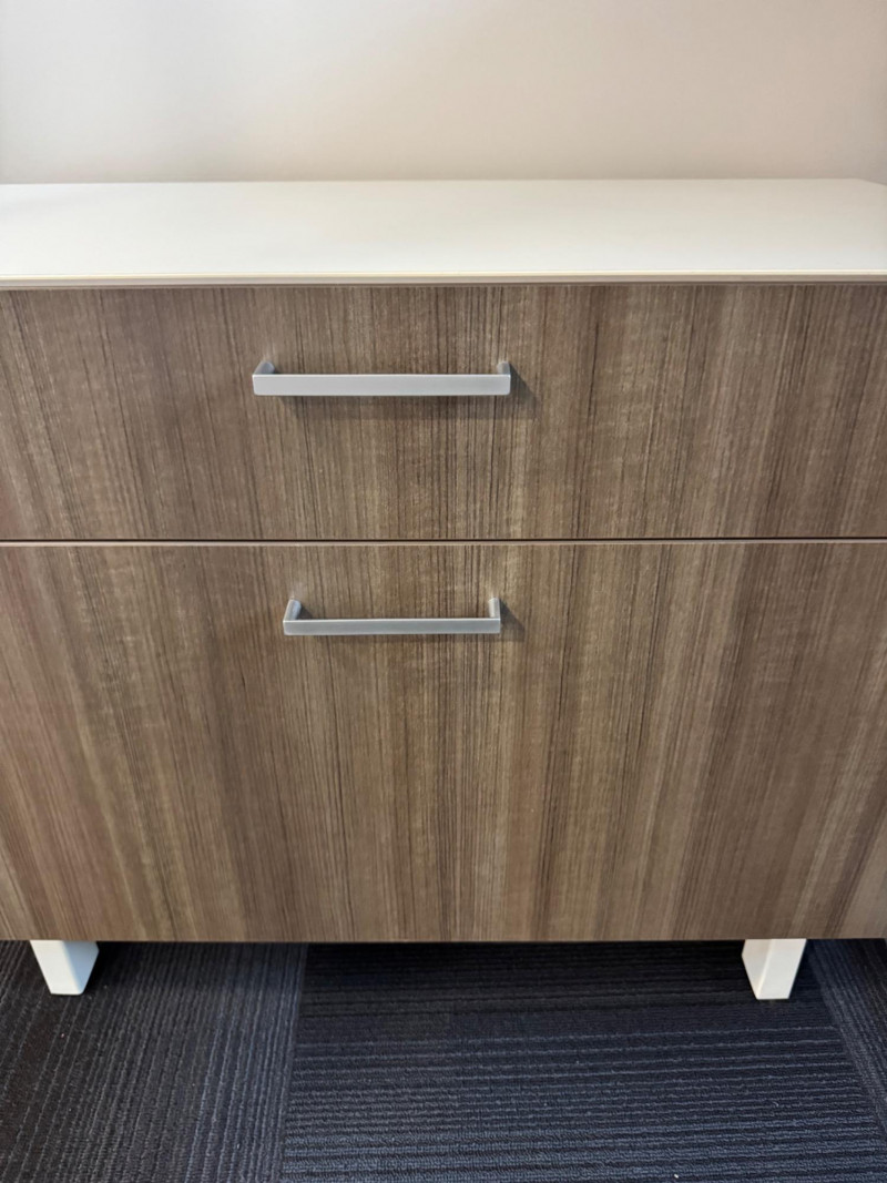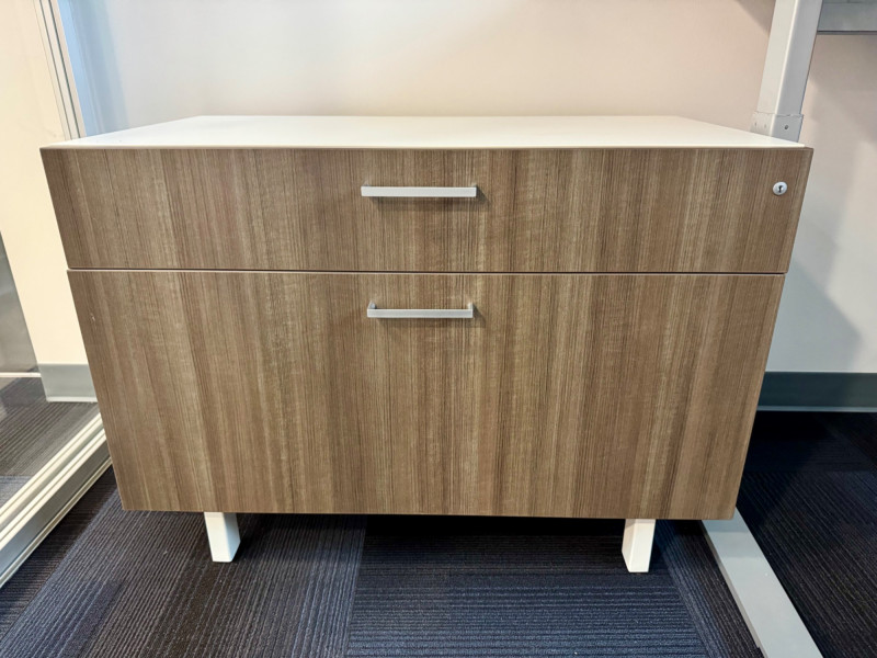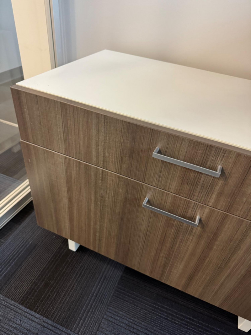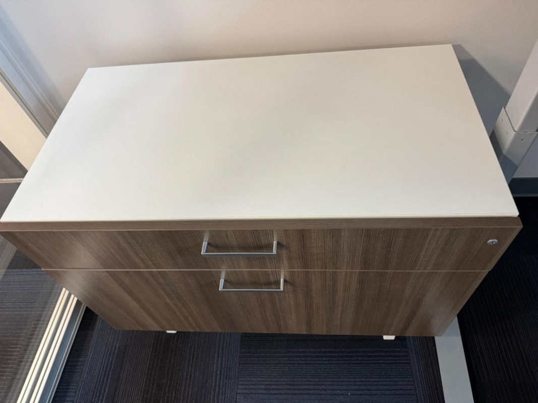 Modern 2-Drawer Wood-Look Lateral File Cabinet w/ White Top & Lock #3. 36” Wide 20” Deep 26” Tall Bidding on this lot is an agreement that: (1.) You will have at least 2 capable, able bodied persons to lift and load at a minimum. (2.) You will bring a hand truck and/or any other tools needed to remove this item. If these steps are not followed your item will be forfeit and no refund given.
