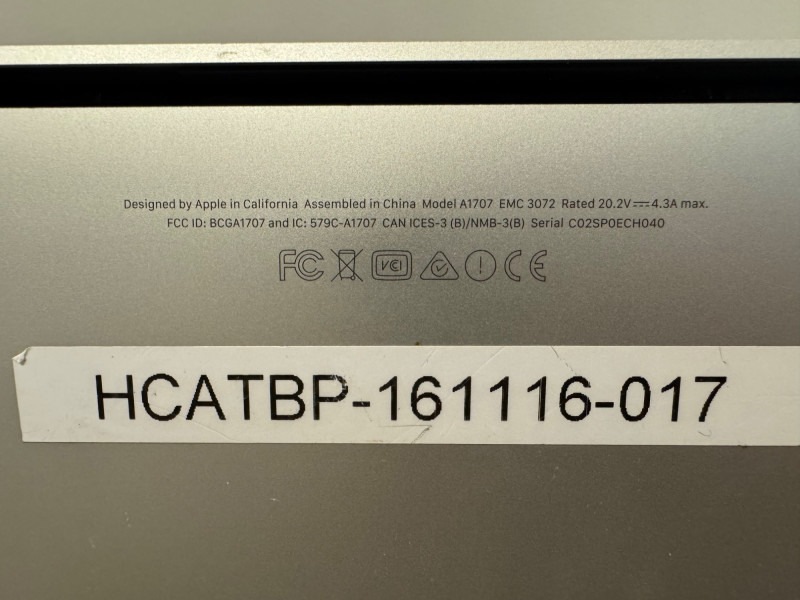 Lot # 119 - Apple MacBook Pro 15” w/ Touch Bar + Charger – C02SP0ECH040