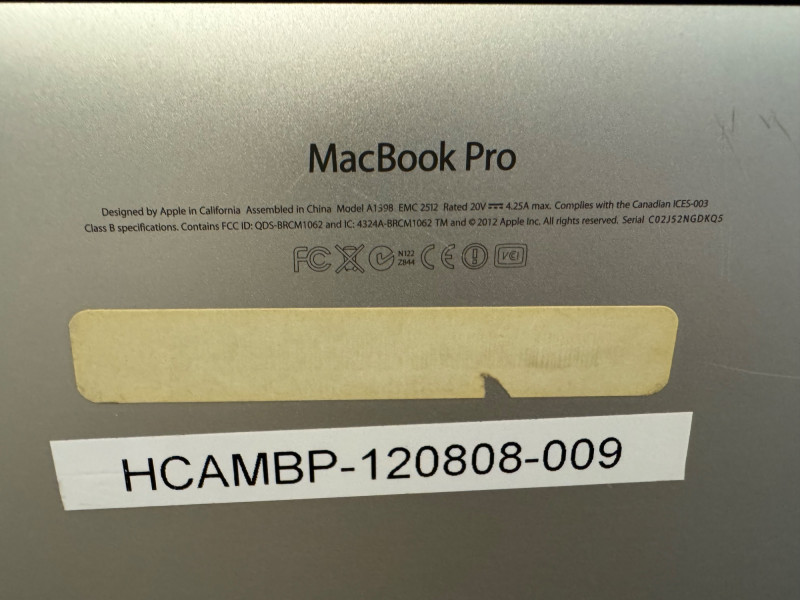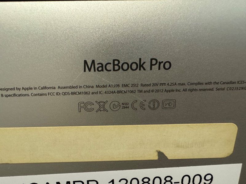 Apple MacBook Pro 15" Retina Display w/ Charger - C02J52NGDKQ5.