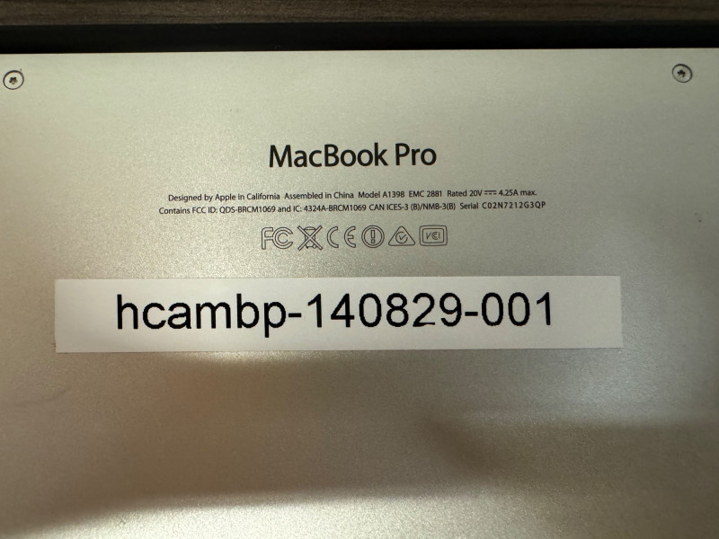 Apple MacBook Pro 15" Retina Display w/ Charger - C02N7212G3QP.