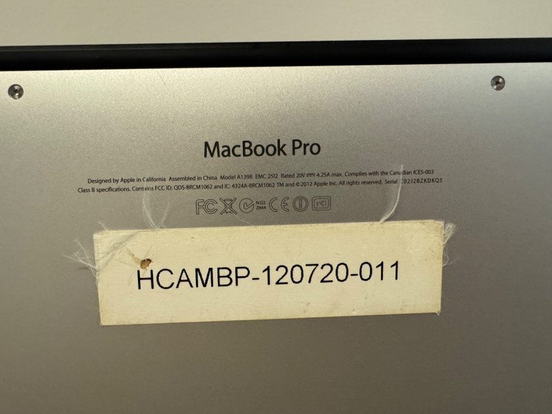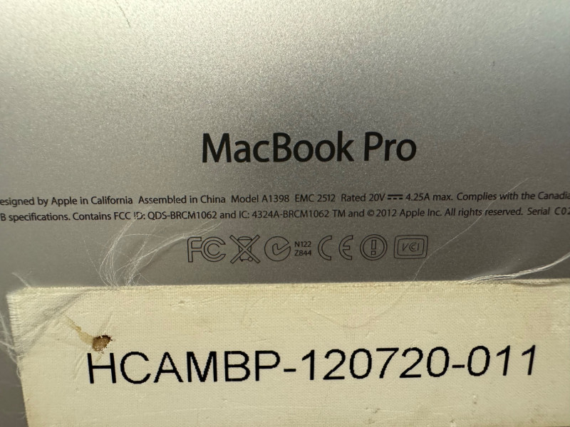 Apple MacBook Pro 15" Retina Display w/ Charger -C02J2BZKDKQ5.