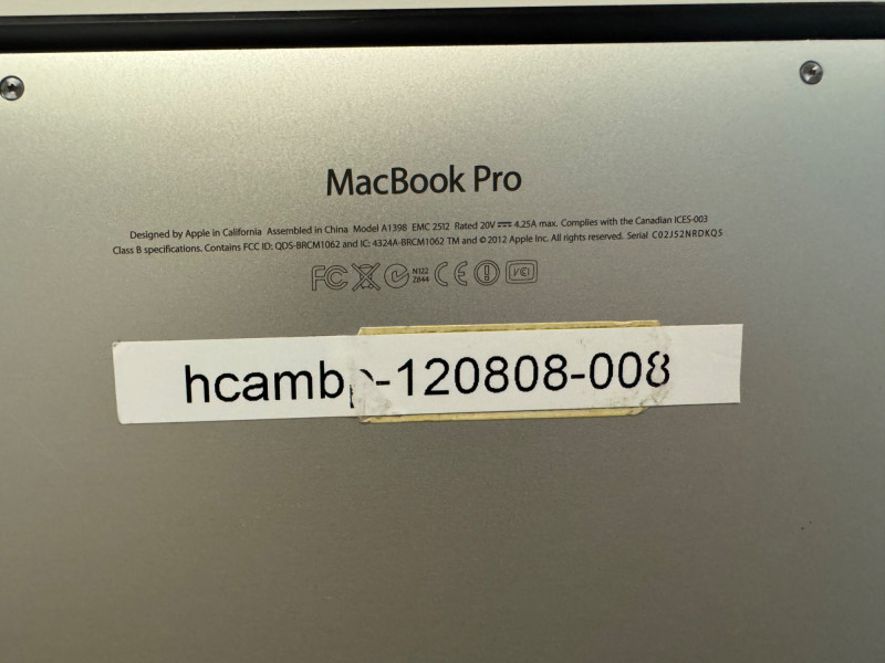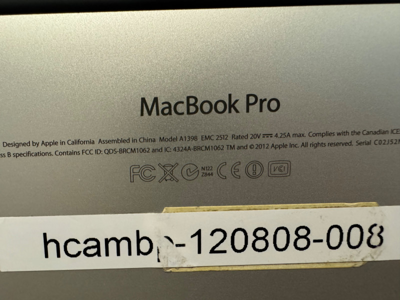 Apple MacBook Pro 15" Retina Display w/ Charger - C02J52NRDKQ5.