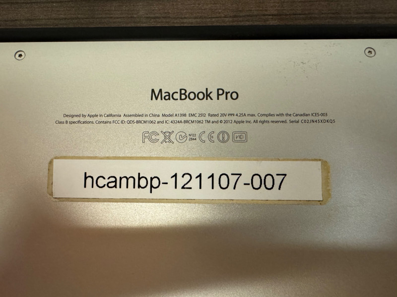 Apple MacBook Pro 15" Retina Display w/ Charger - C02JN45XDKQ5.