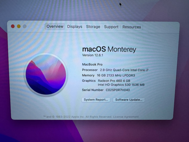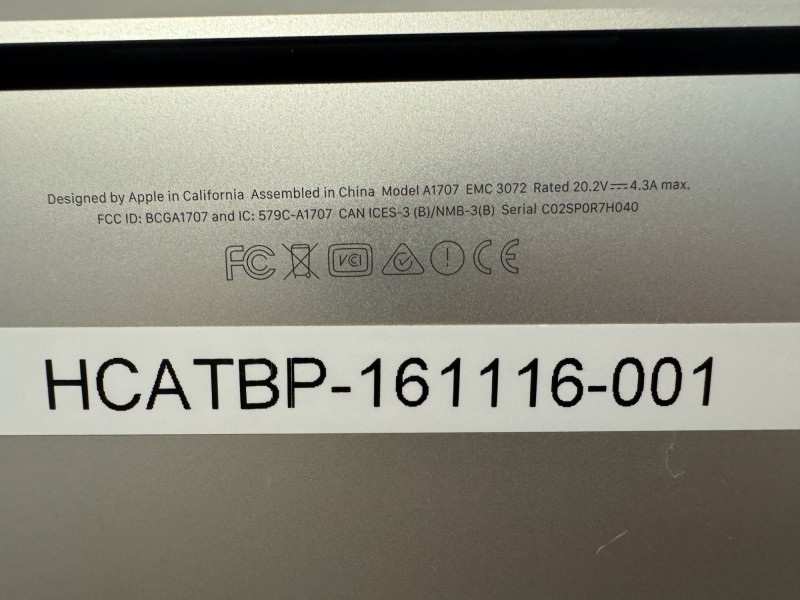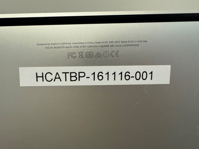 Lot # 145 - Apple MacBook Pro 15” w/ Touch Bar + Charger - C02SP0R7H040