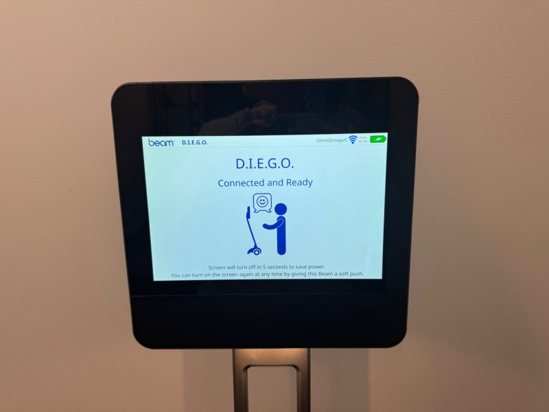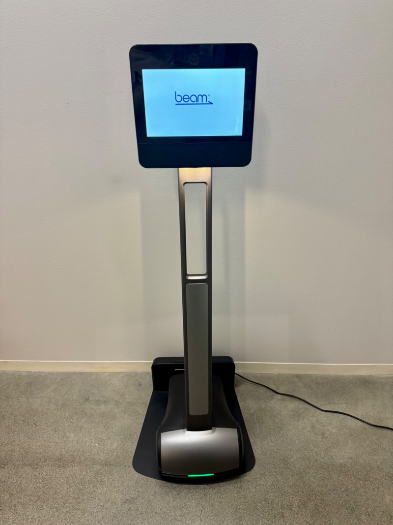 Beam Telepresence Robot + Charging Dock by Suitable Tech, 53” Tall #2. Features: Beam telepresence robot by Suitable Technologies Includes matching Beam charging station Stands approx. 53 inches tall Features large display screen, camera, mic, and built-in speakers Designed for mobile remote communication and virtual presence Ideal for business, healthcare, education, and accessibility use