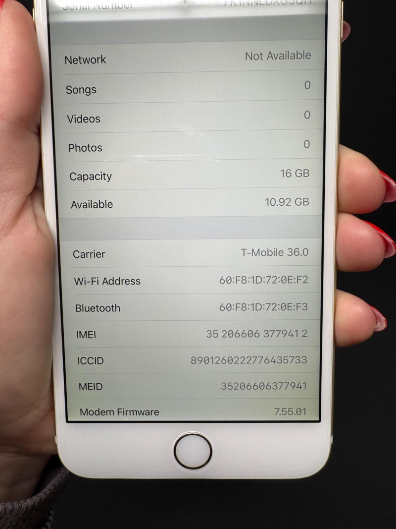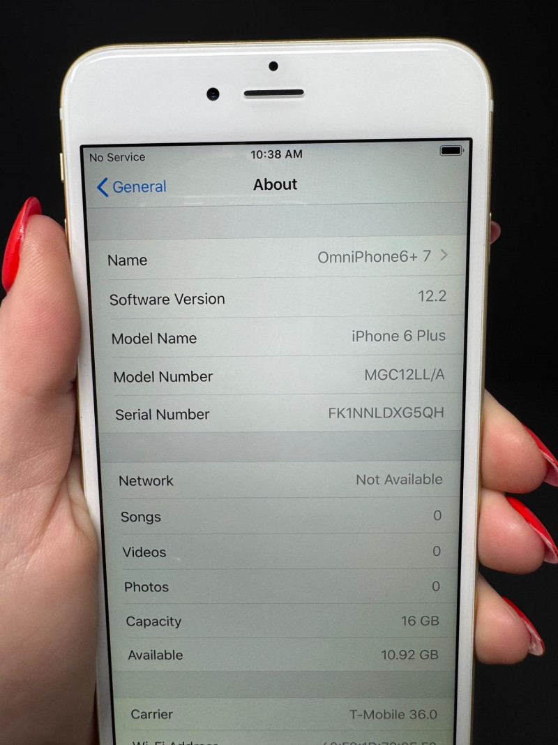 Apple iPhone 6 Plus 16 GB Gold – iOS 12.2, T-Mobile, 10.9 GB Free. Features Model:iPhone 6 Plus (MGC12LL/A) – 16 GB Gold iOS version:12.2 Carrier:T-Mobile 36.0 Serial number:FK1NNLDXG5QH Available storage:10.92 GB of 16 GB Condition disclaimer: All pieces are previously used and may display light, unnoted wear—smudges, marks, or small surface scratches—with minor variations from item to item.