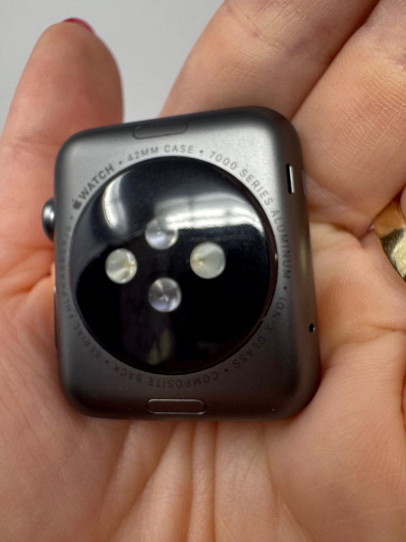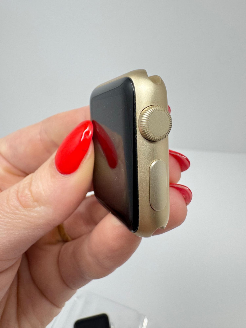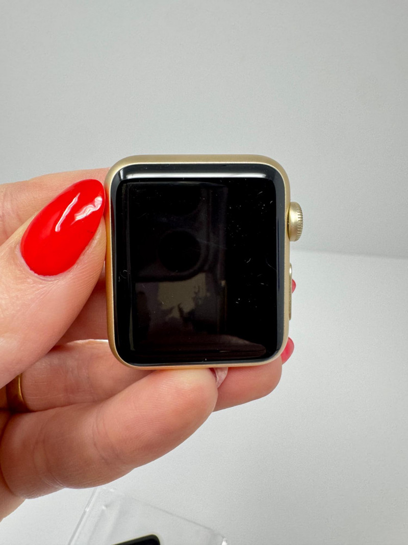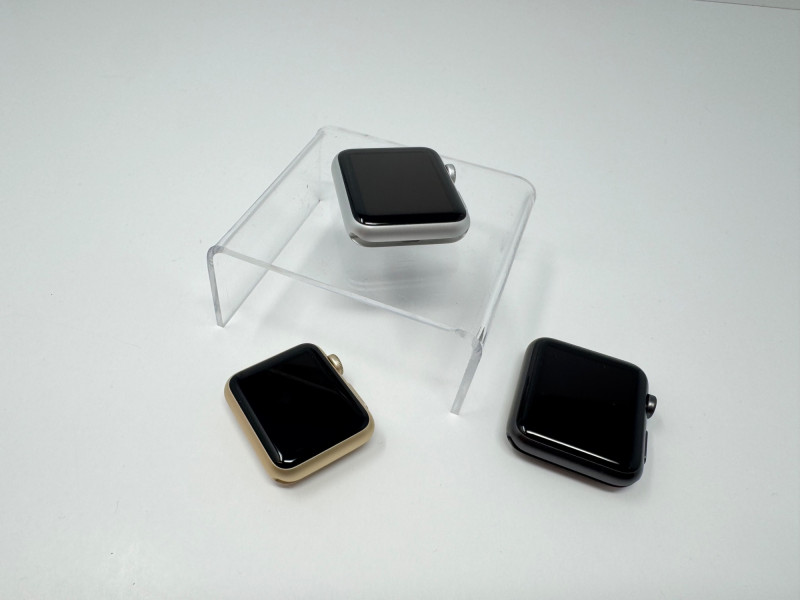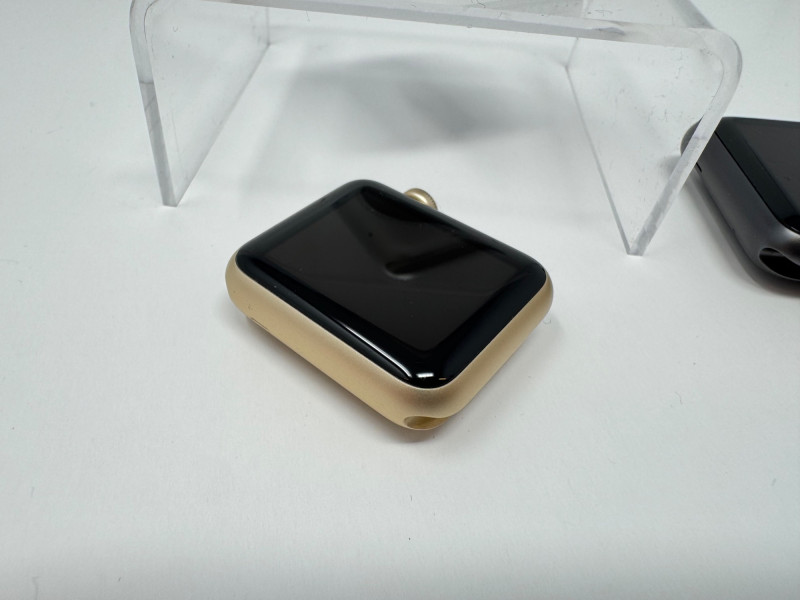(3) Apple Watch Aluminum Cases: 42 mm Silver/Gray + 38 mm Gold. Apple Watch 42mm Aluminum (1st gen) Condition disclaimer: All pieces are previously used and may show light, unnoted wear such as smudges or small surface scratches. Apple Watch 38mm - Series 1 does not fully power on; the two 42mm Aluminum (1st gen) units do power on to the pairing screen. No bands or chargers are included with any of the watches.