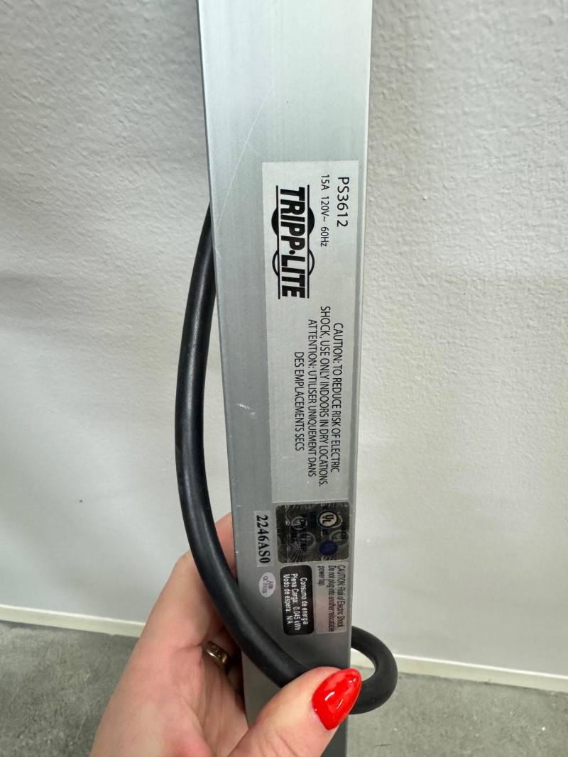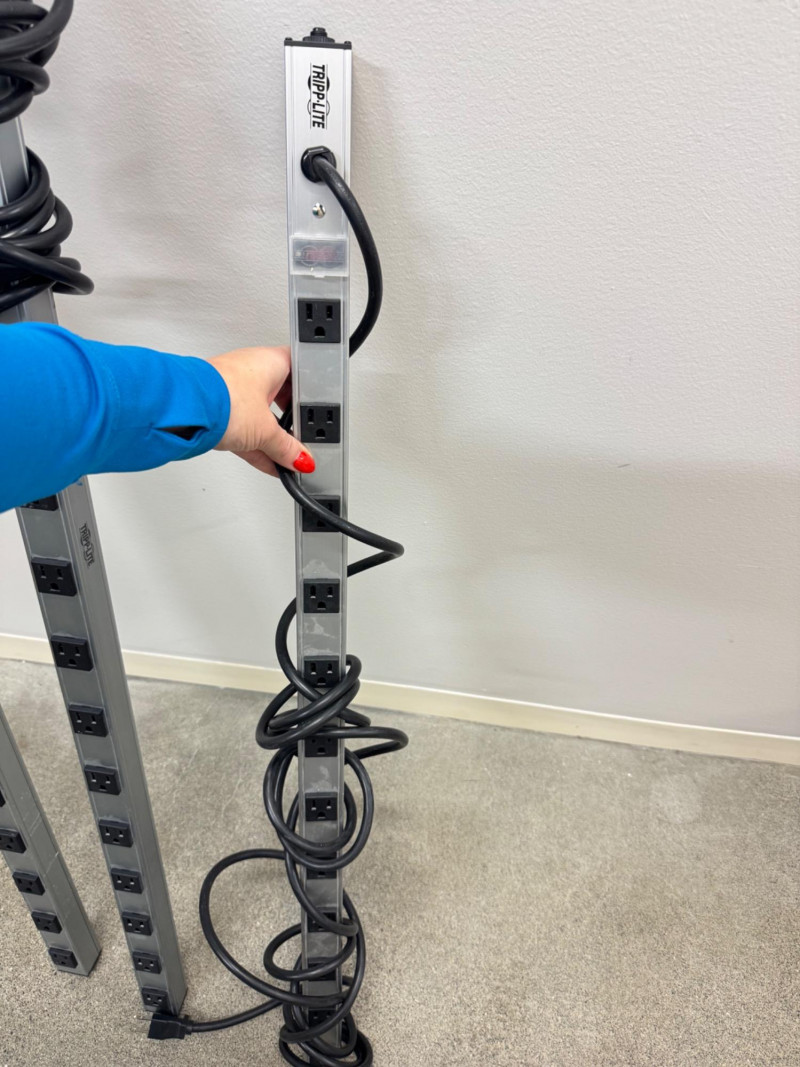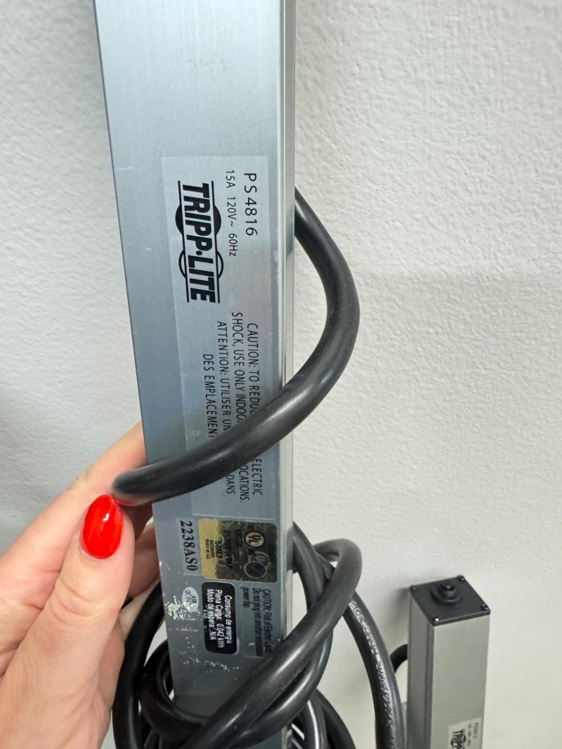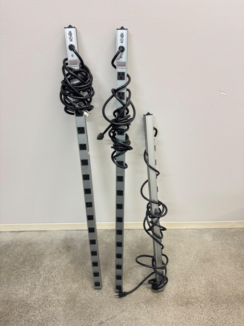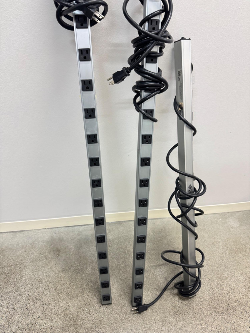 3 Tripp-Lite Power Strips – 2×16-Outlet PS4816 & 1×12-Outlet PS3612 #1. Note: All strips measure between approximately 37″ and 48″ in length.