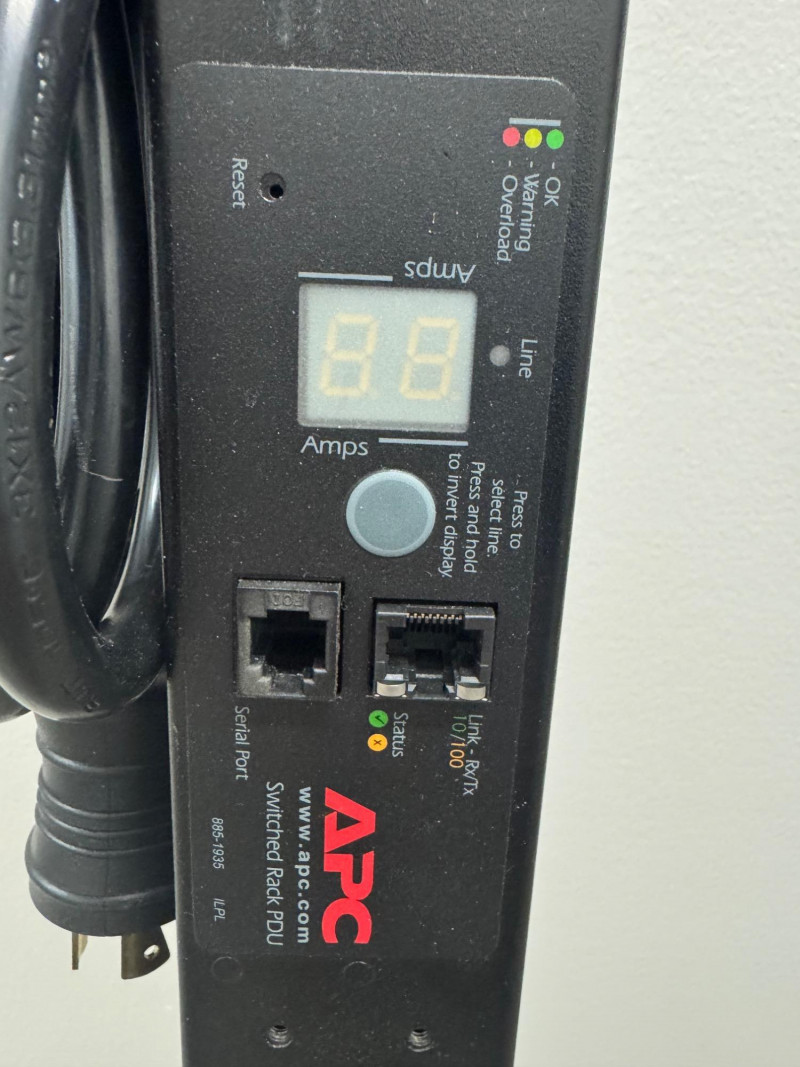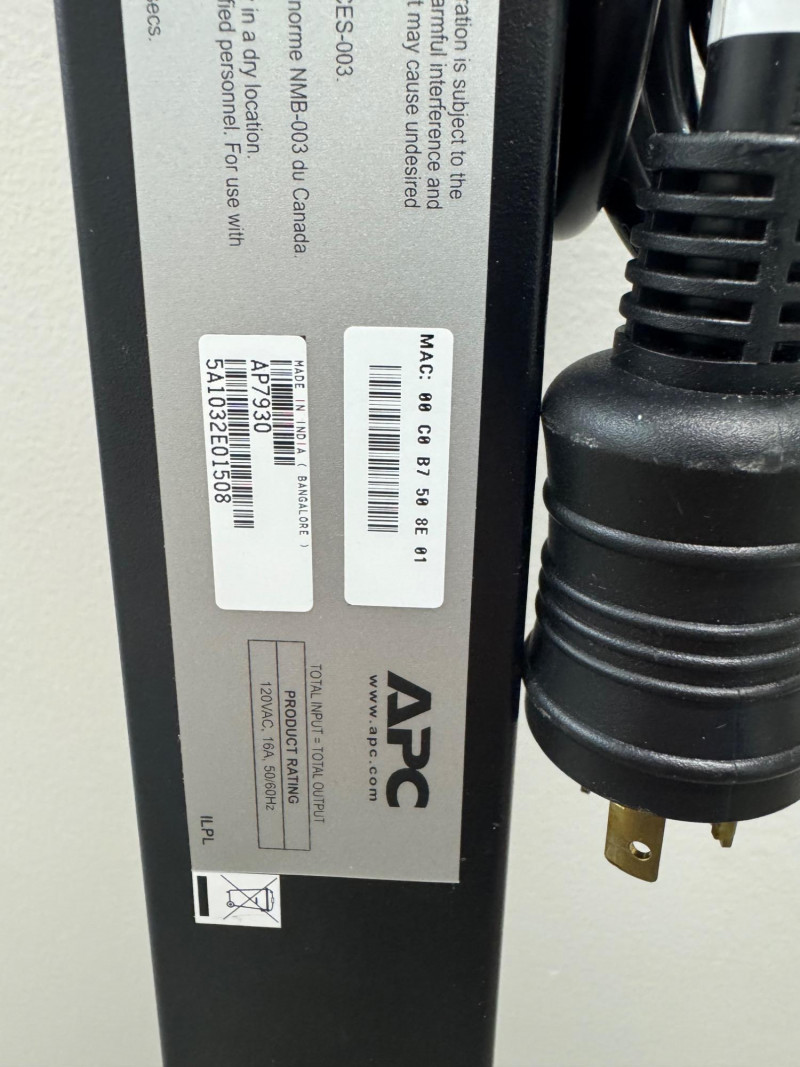 APC Switched Rack PDU 24-Outlet 64″ 16A 120VAC – Est. $1,500+ Outlets: 24 Length: 64″ Input Rating: 120 VAC, 16 A max Comparable price: $1,500+ (listed online)