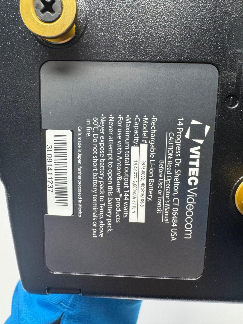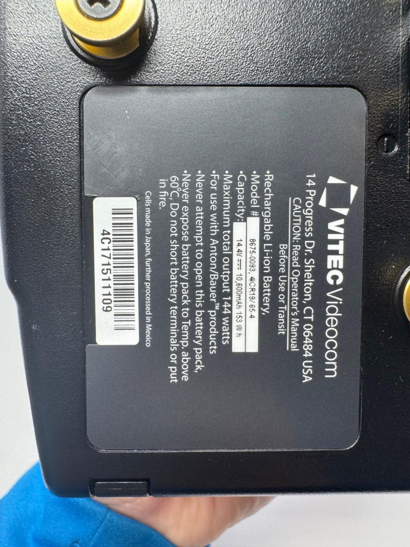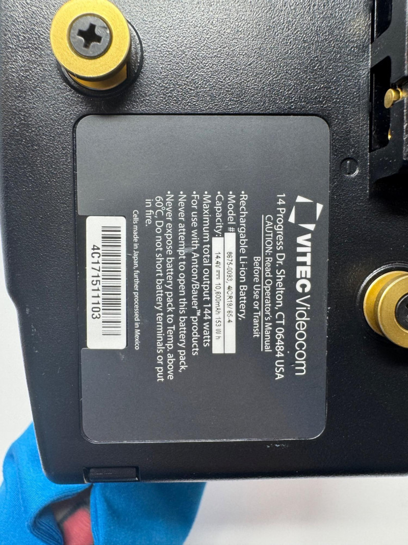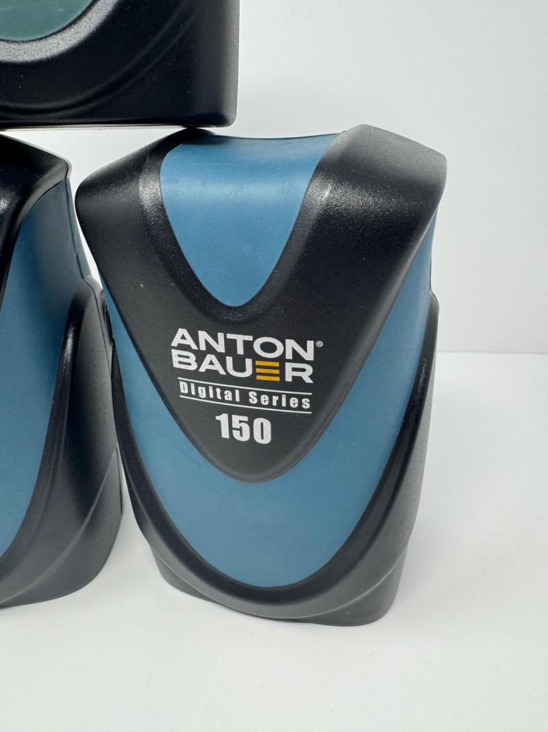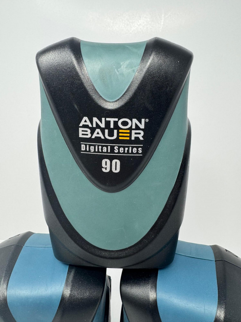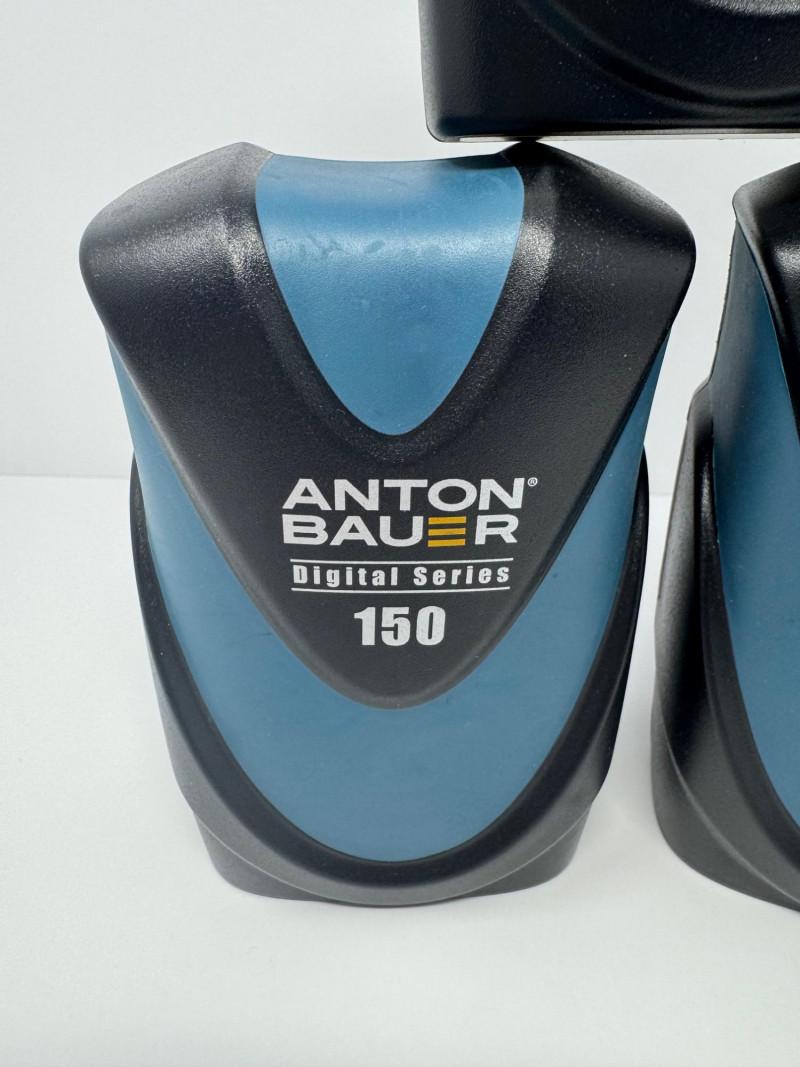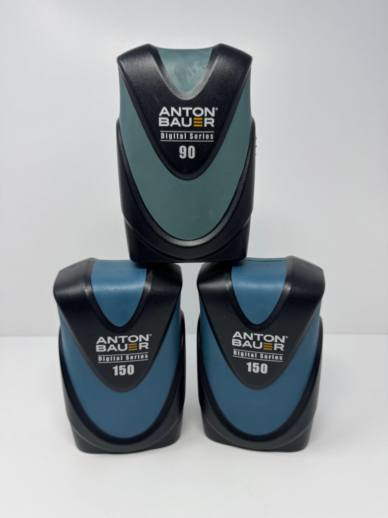 Anton Bauer Digital Series 90 & 150 Li-Ion Batteries (Qty 3). Note: Only the items shown in the photos are guaranteed to be included. Units Included: 1× Digital Series 90 2× Digital Series 150 Model Number (150):8675-0093 Serial Numbers (150):4C171511115, 4C171511073 Capacity (all):14.4 V, 10 600 mAh (~153 Wh) Maximum Output:144 W\