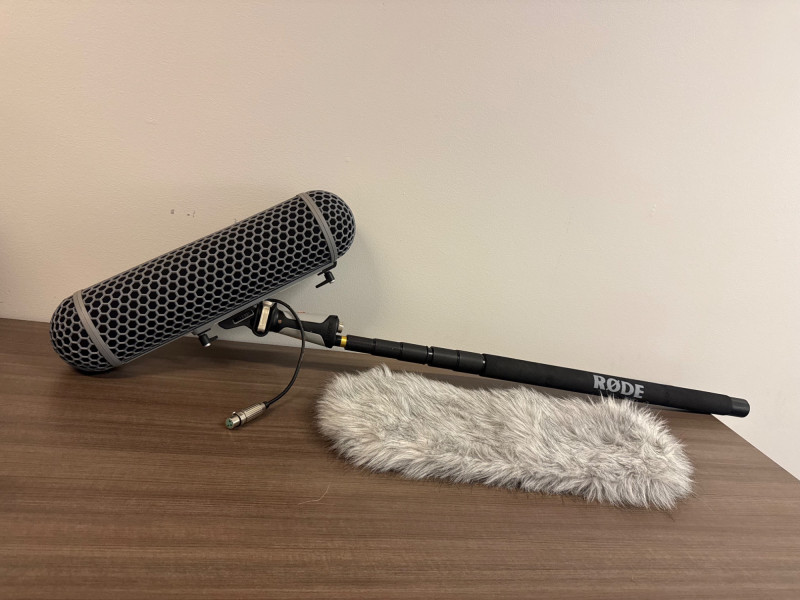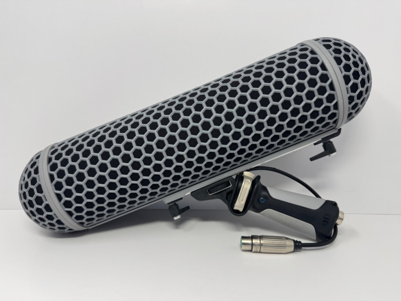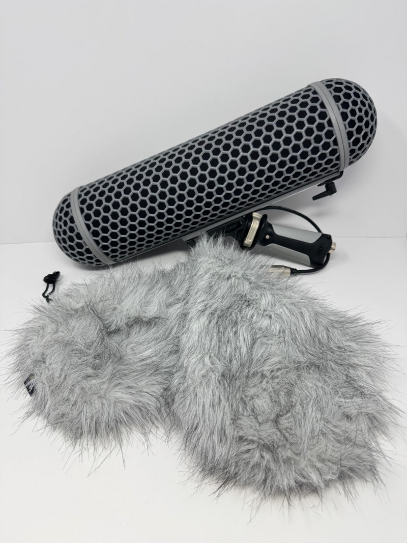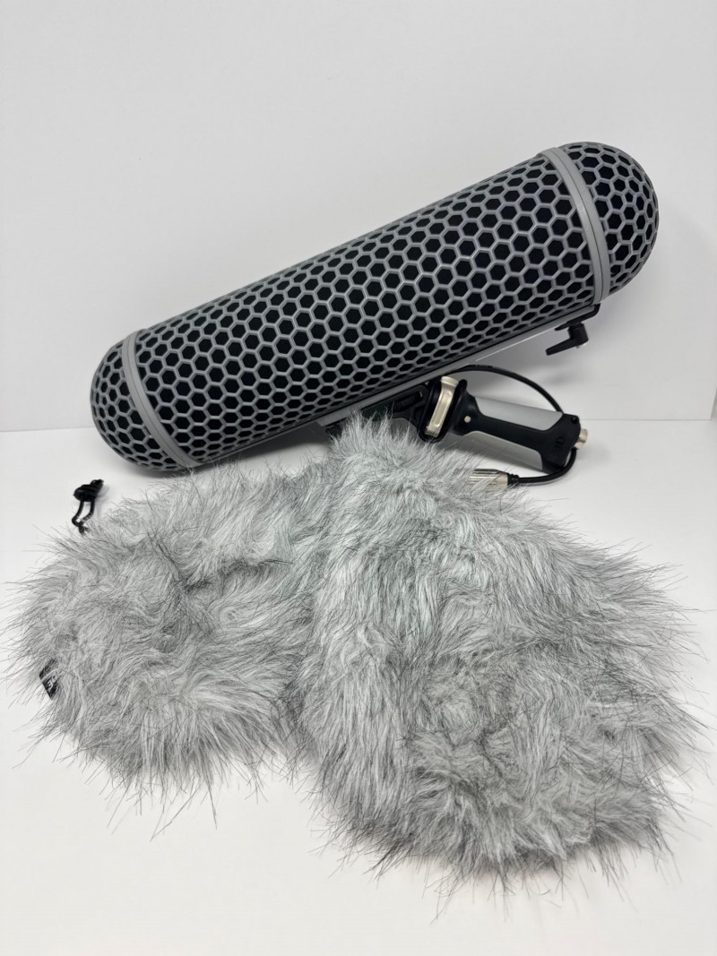 Rode Blimp Microphone Windshield Housing & 18″ Boom Pole (No Mic). Included Rode blimp windshield housing (no capsule inside) Removable faux-fur wind muff (“dead cat”) Rode telescoping boom pole (≈18″ extended) Notes Housing only; no microphone element is included Only the items shown in photos are guaranteed included