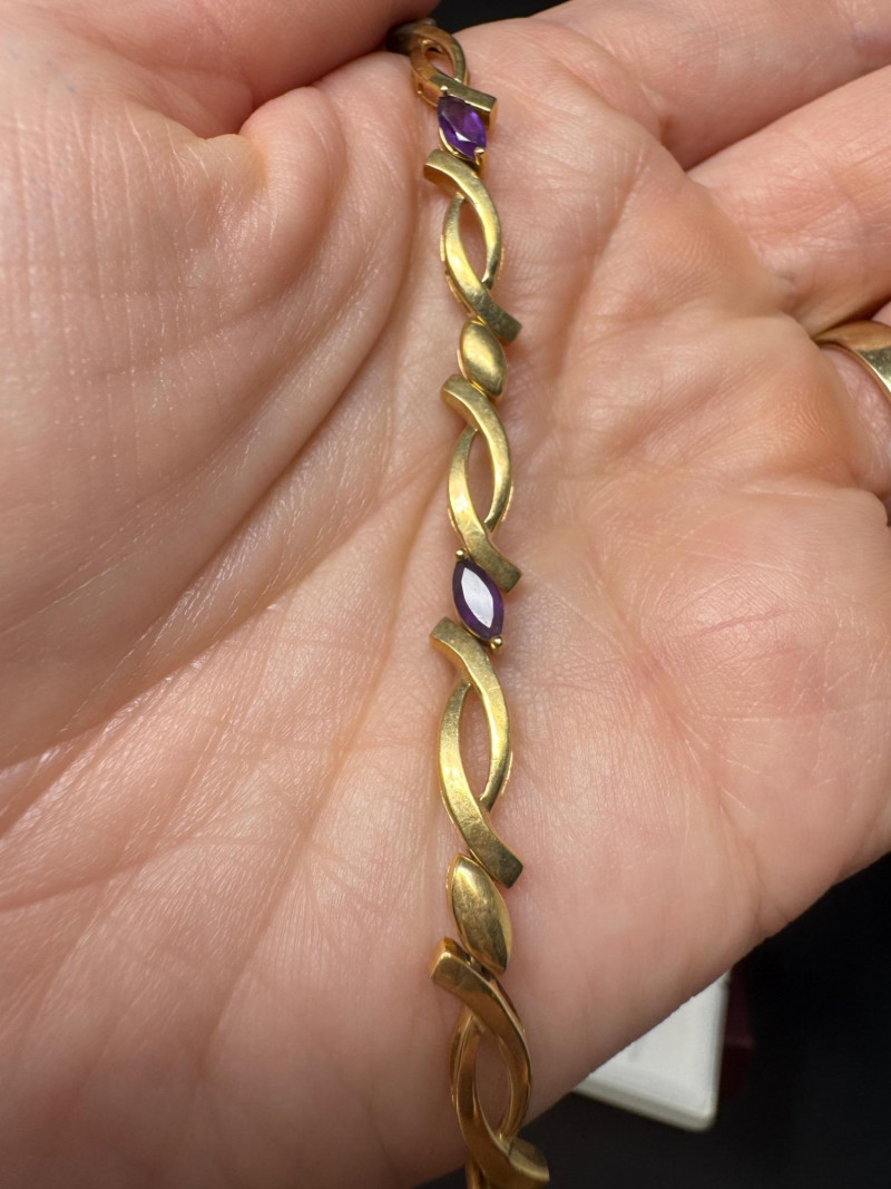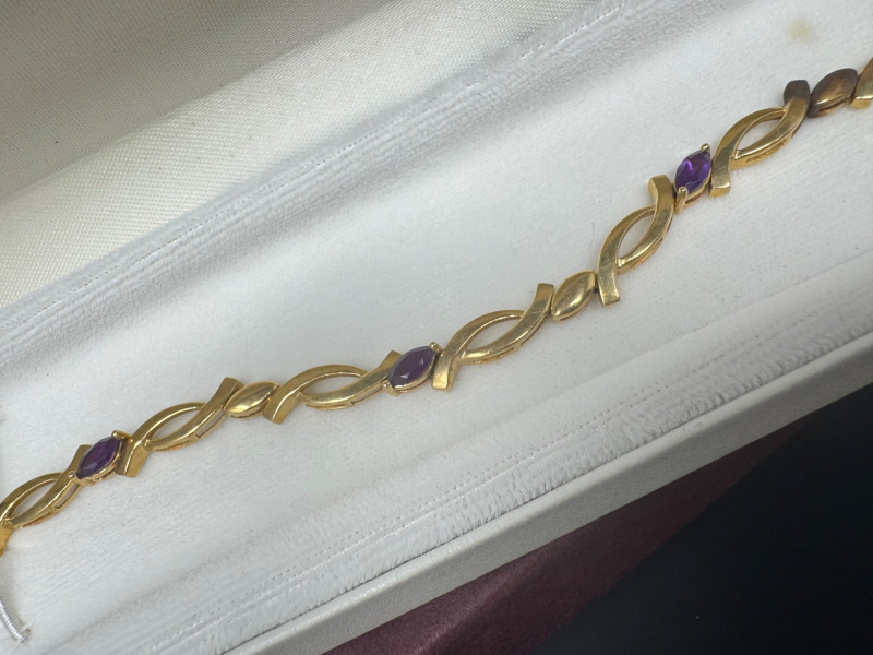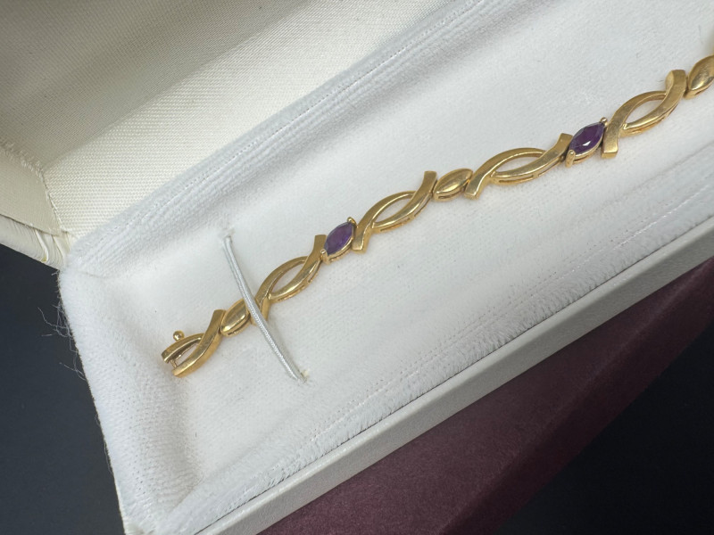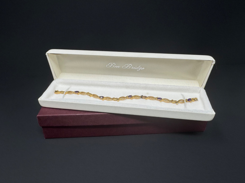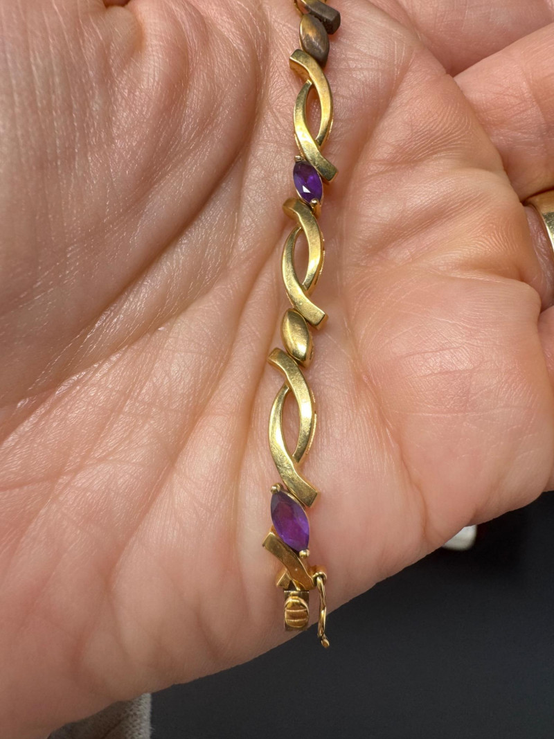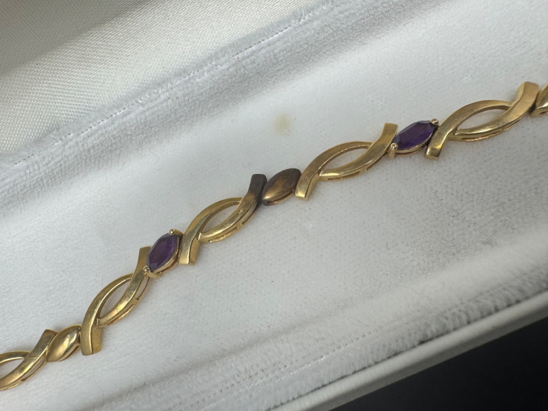 14K Gold & Amethyst Bracelet - 7" Length, Approx. 8.71g. Condition: Light surface tarnish noted consistent with normal wear. PICK UP DETAILS