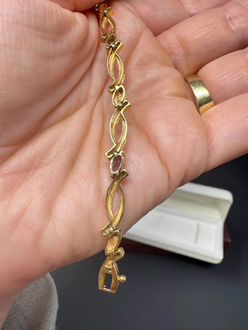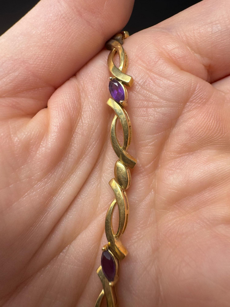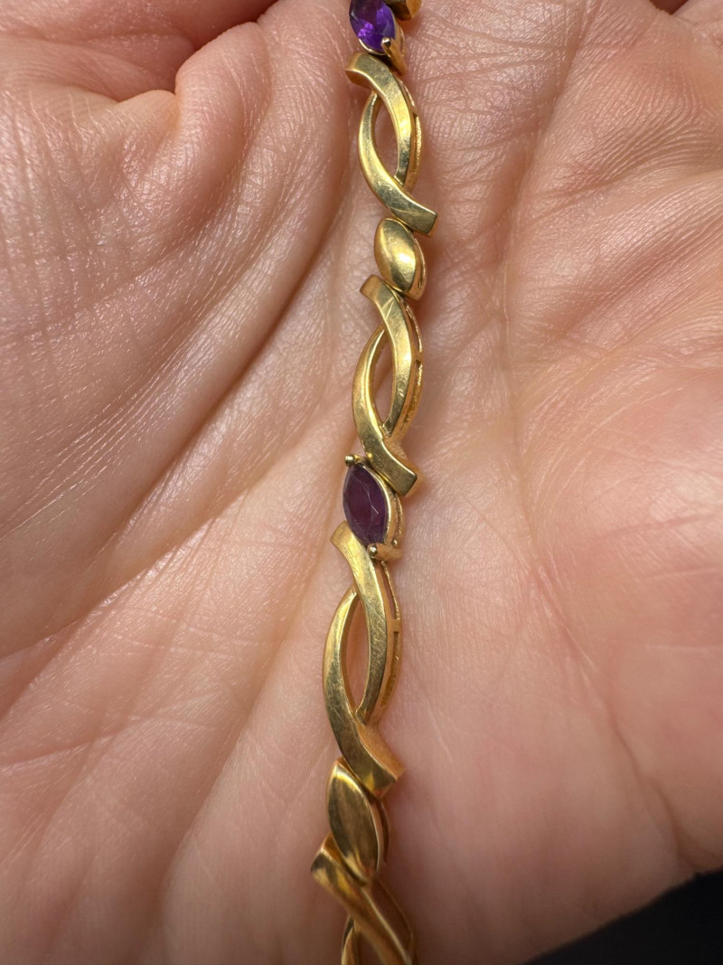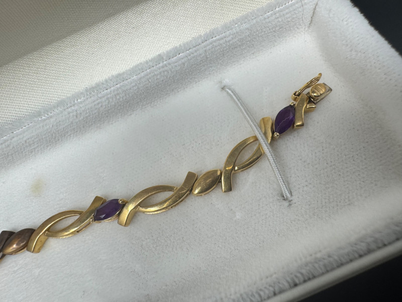 14K Gold & Amethyst Bracelet - 7" Length, Approx. 8.71g. Condition: Light surface tarnish noted consistent with normal wear. PICK UP DETAILS